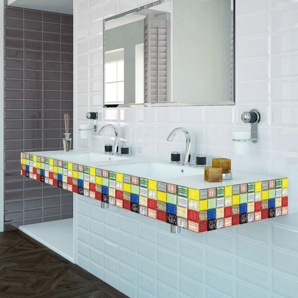 Эта наклейка на плитку изготовлена из высококачественного водонепроницаемого и практичного ПВХ.