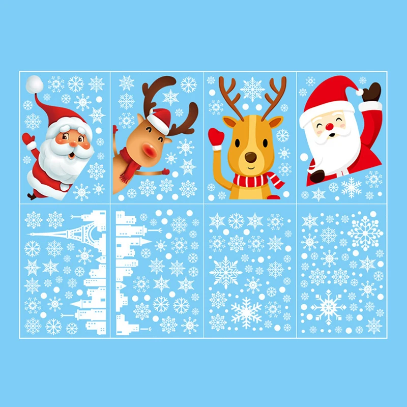 Merry Christmas Stickers Santa Claus Deer Xmas Tree Frozens Snowflake Wall Window Stickers Ornaments Navidad 2021 New Year Decor