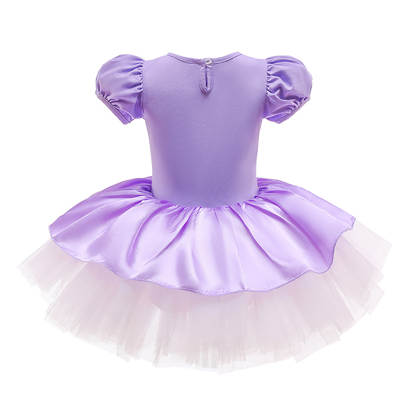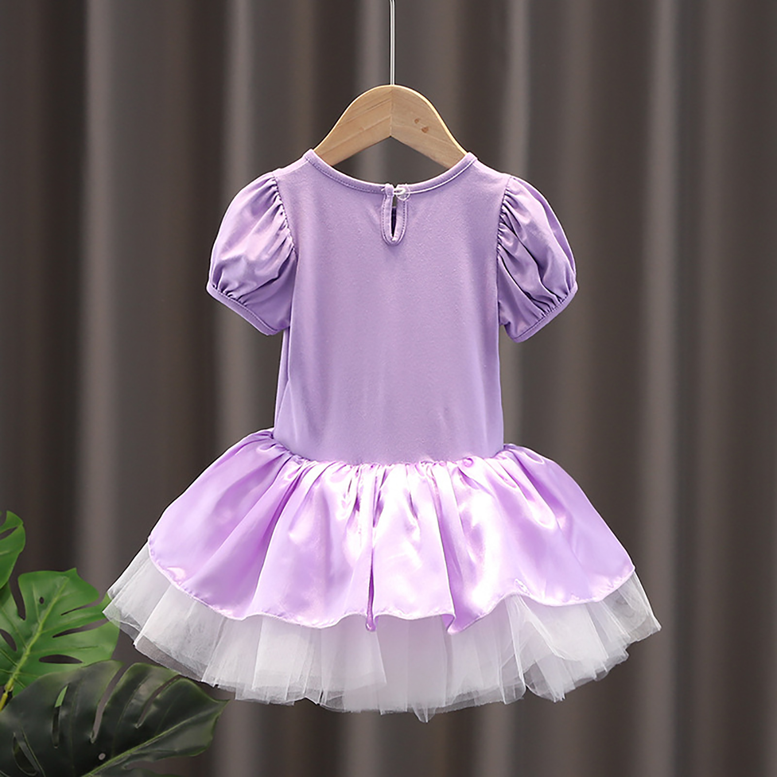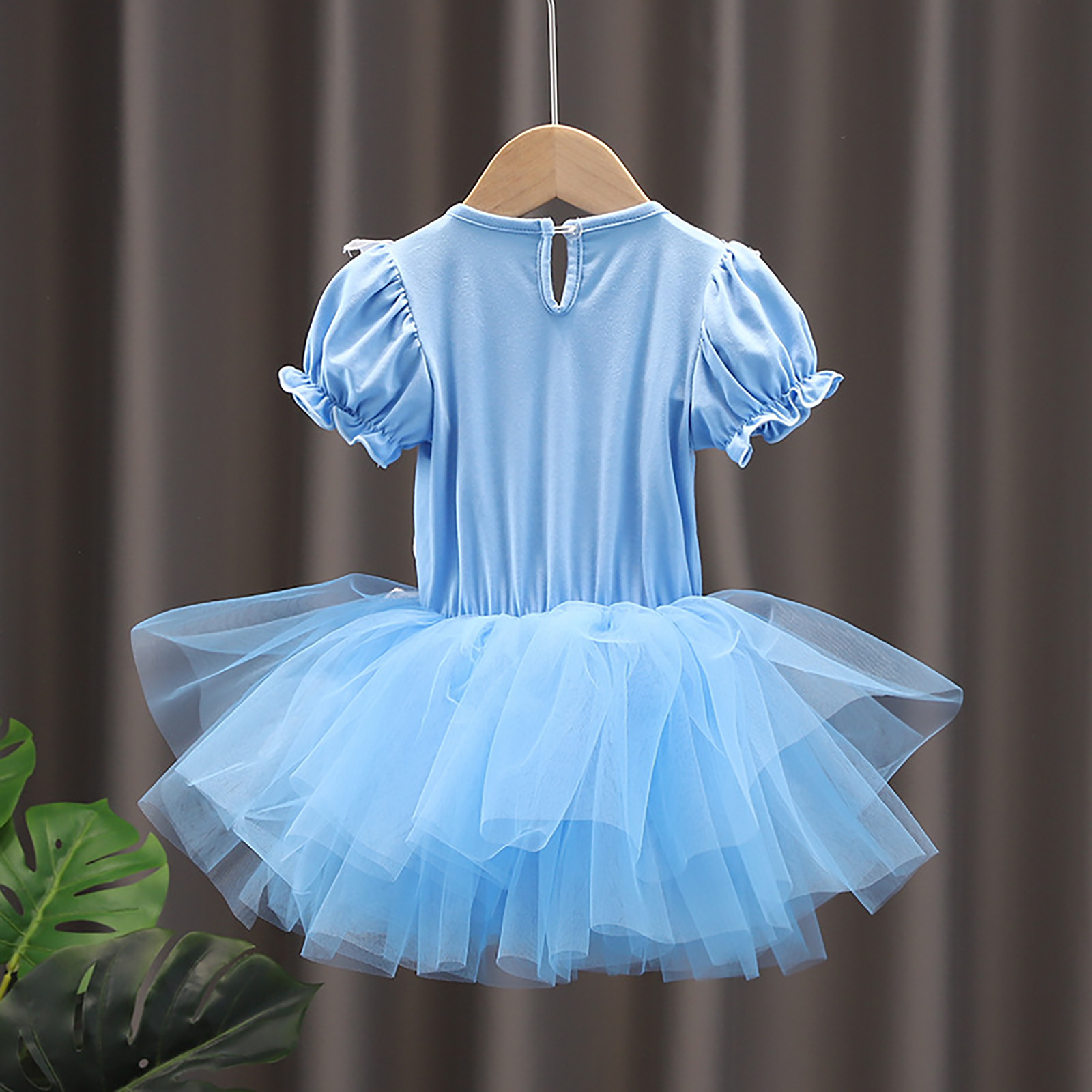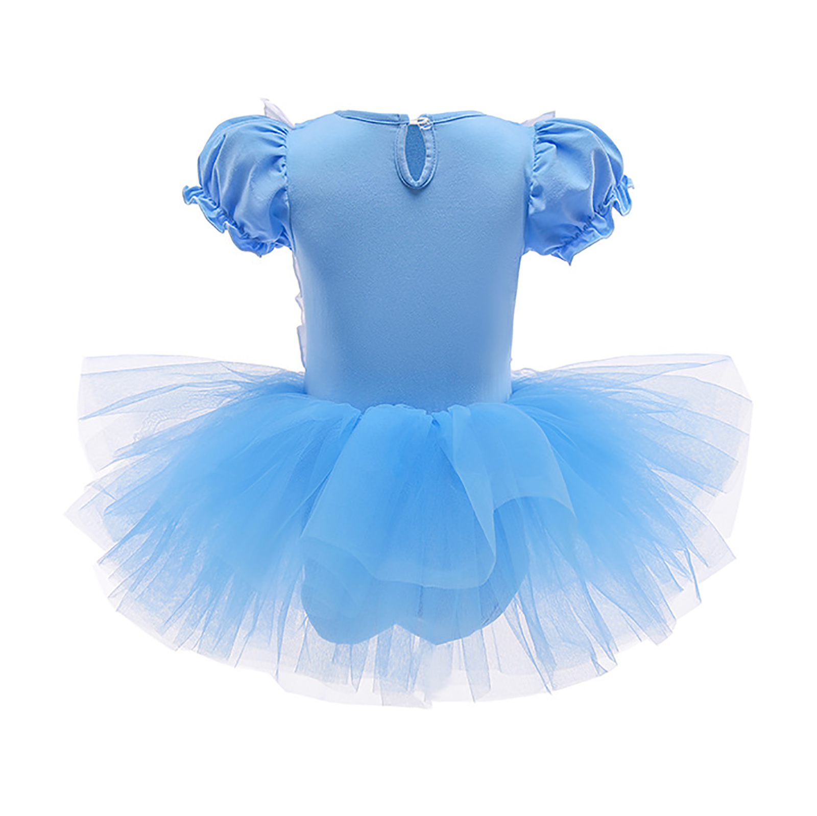 Детское цельнокроеное платье-пачка для девочек Тюлевое платье принцессы с круглым вырезом и короткими рукавами с рюшами и металлическими защелками для танцевальных выступлений.