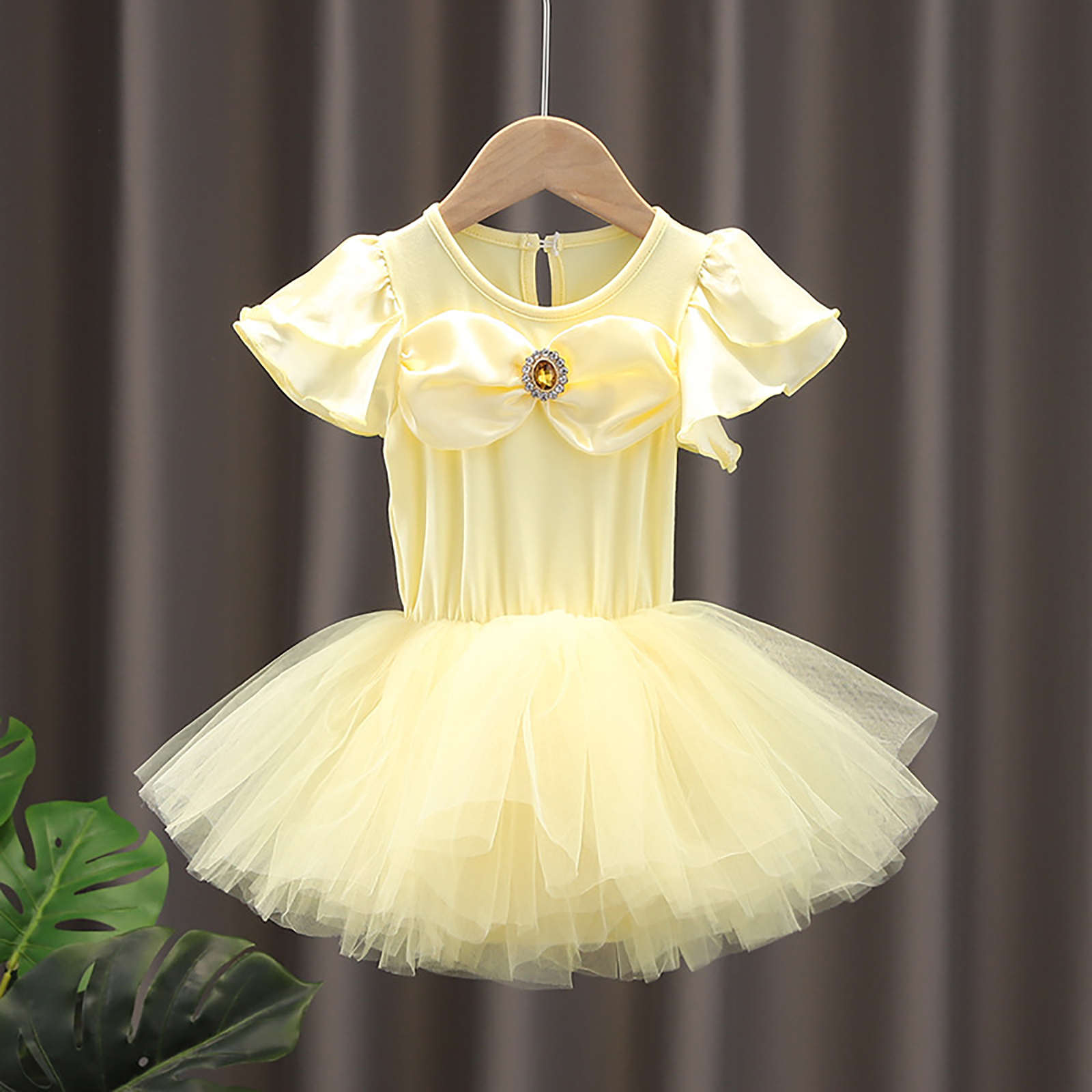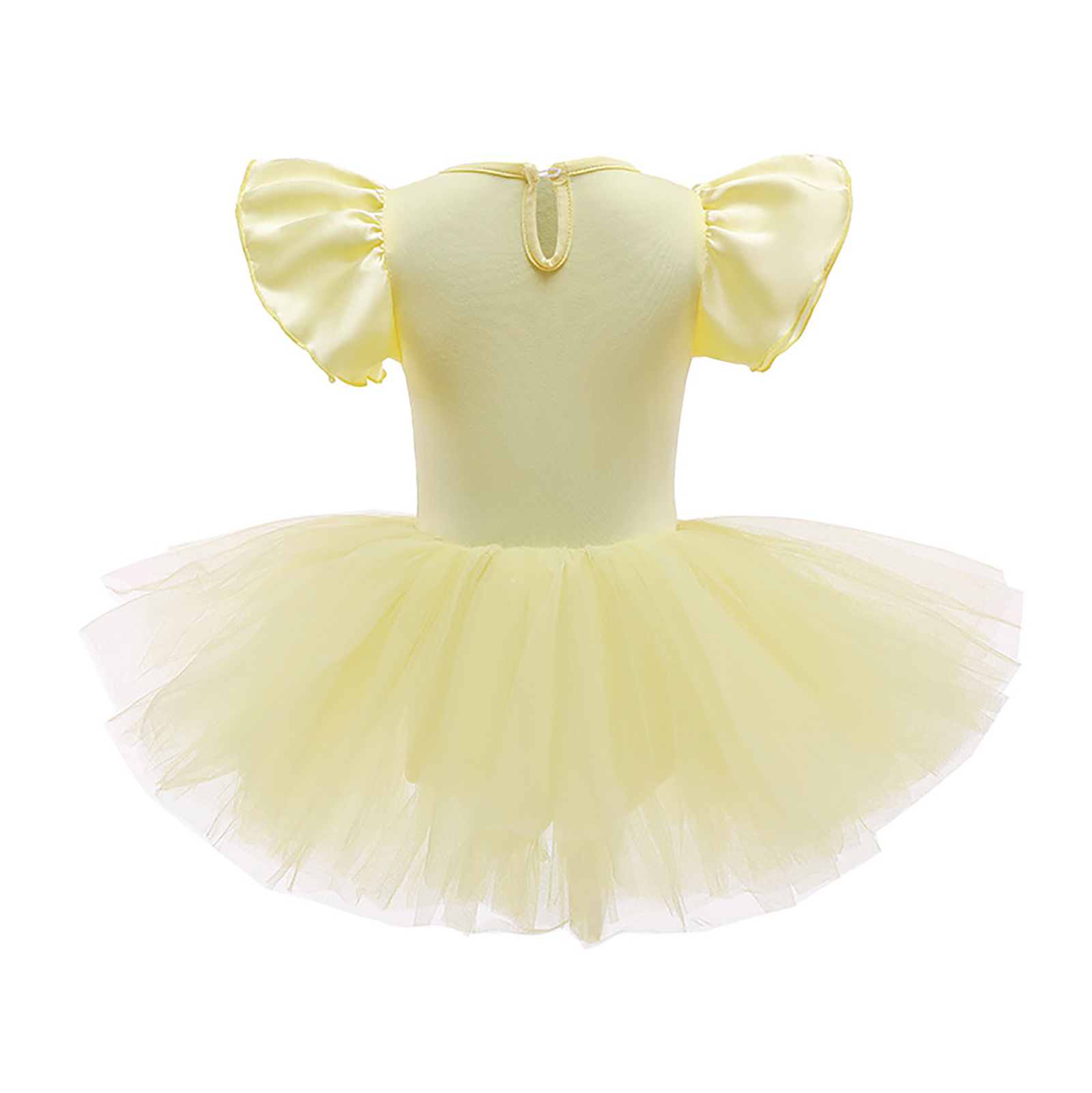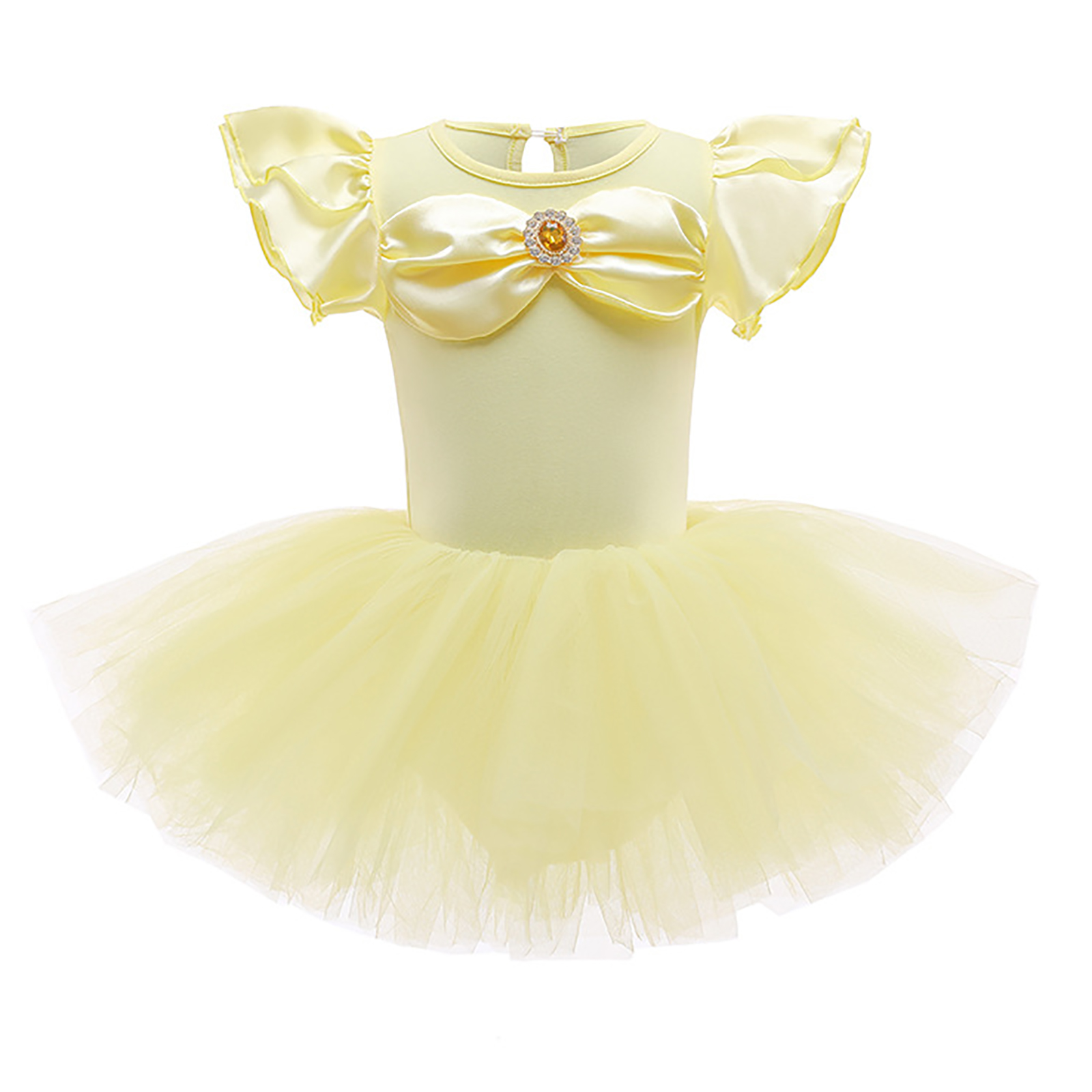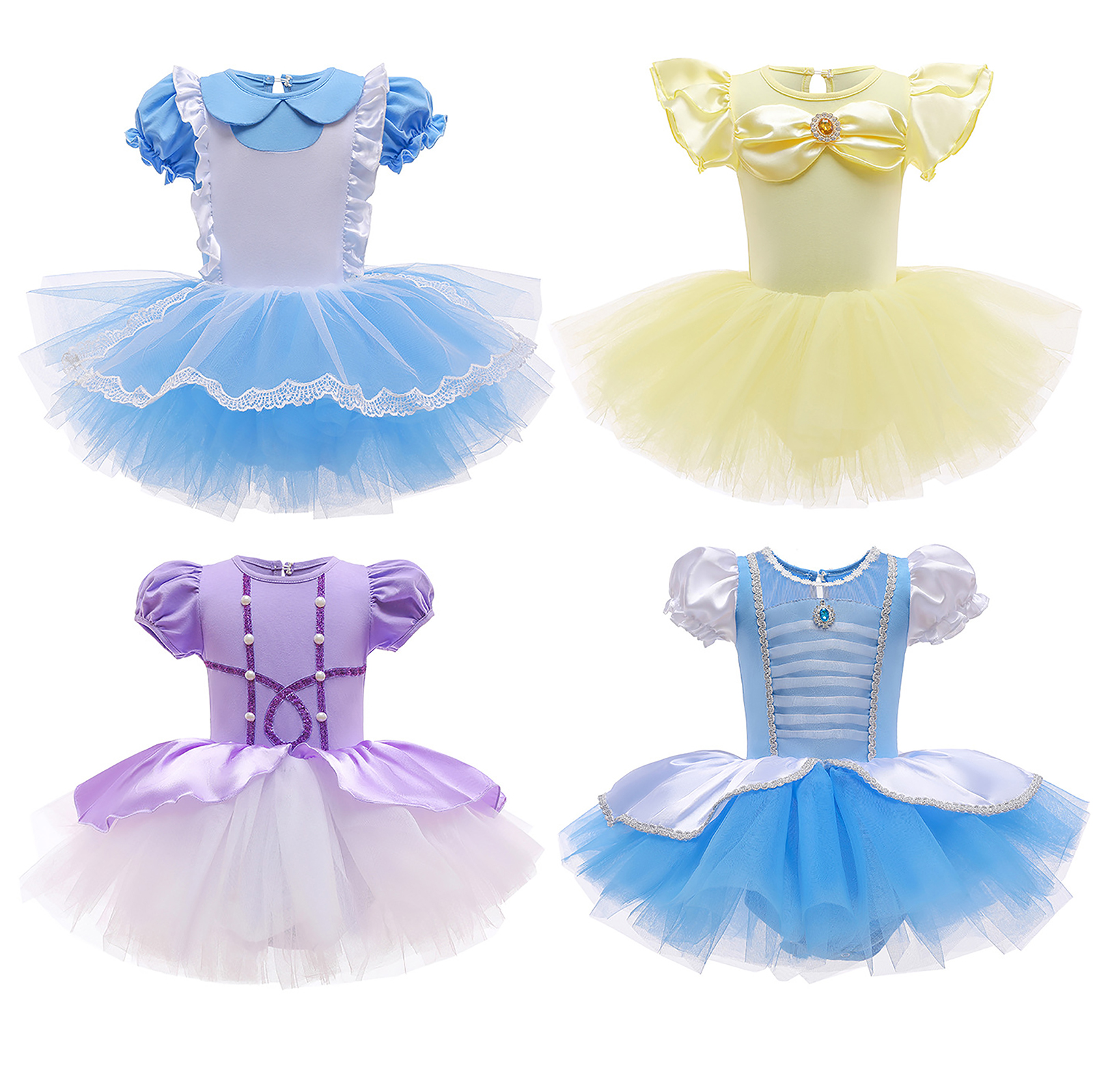Детское цельнокроеное платье-пачка для девочек Тюлевое платье принцессы с круглым вырезом и короткими рукавами с рюшами и металлическими защелками для танцевальных выступлений.