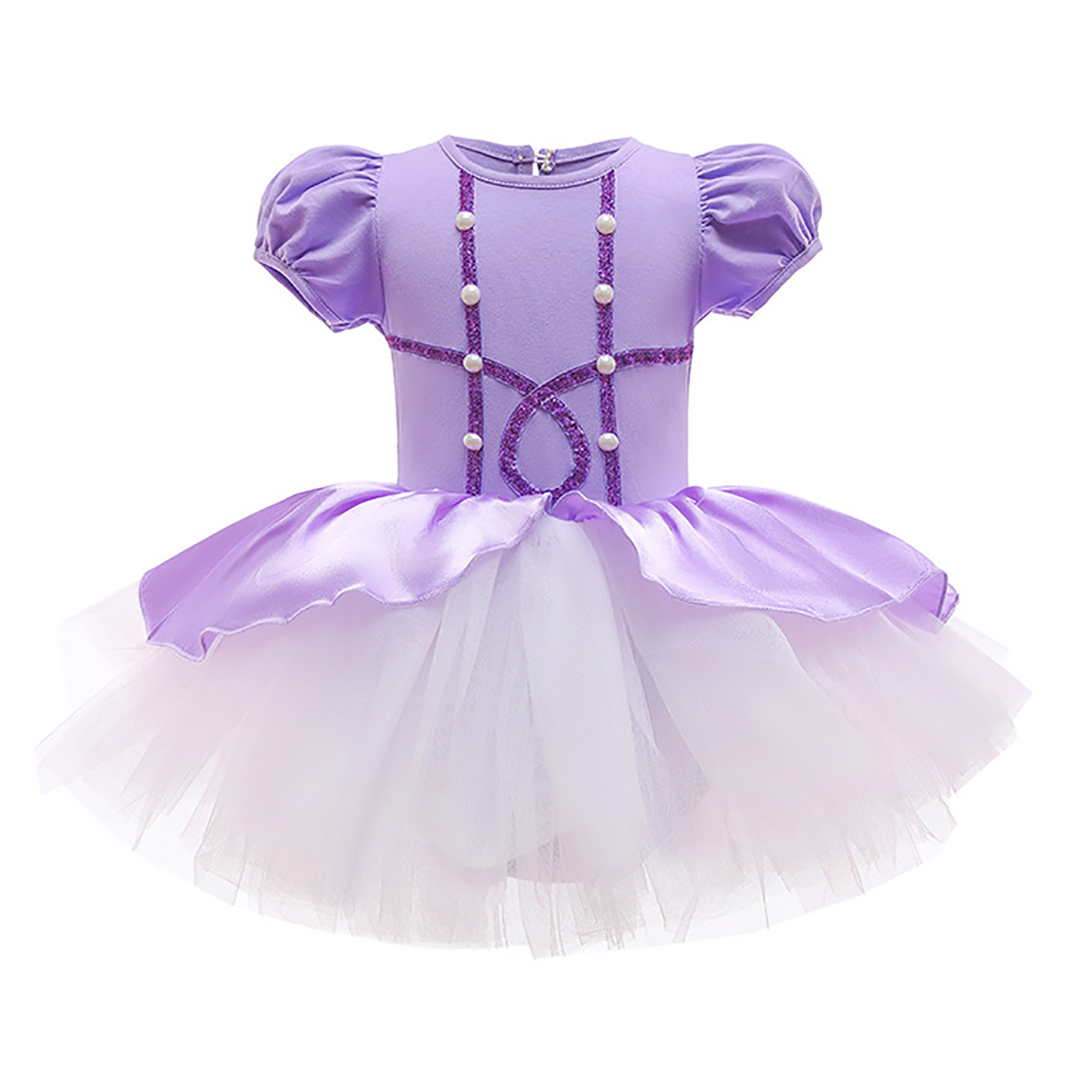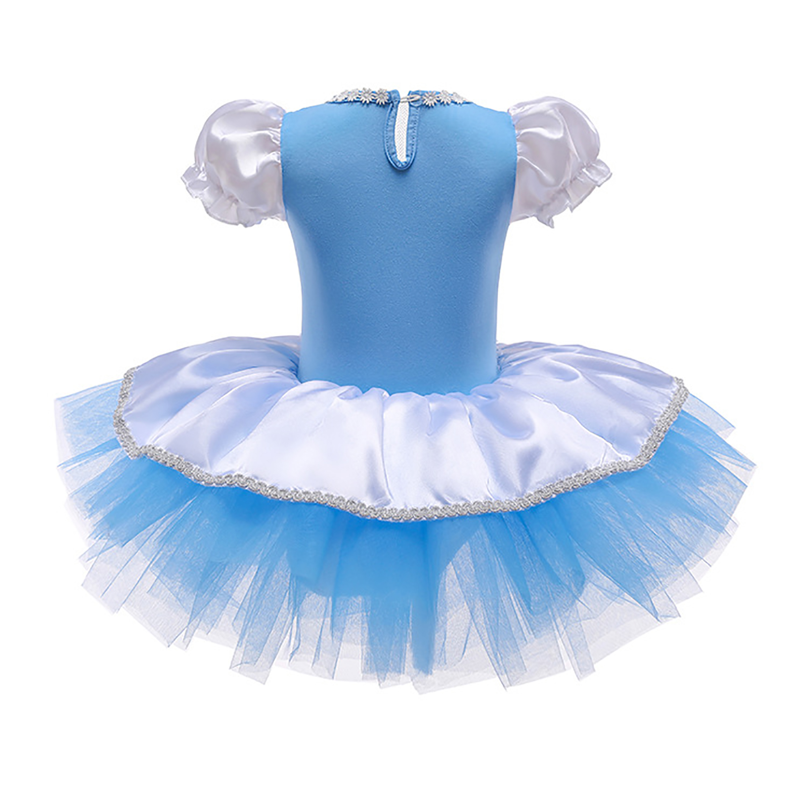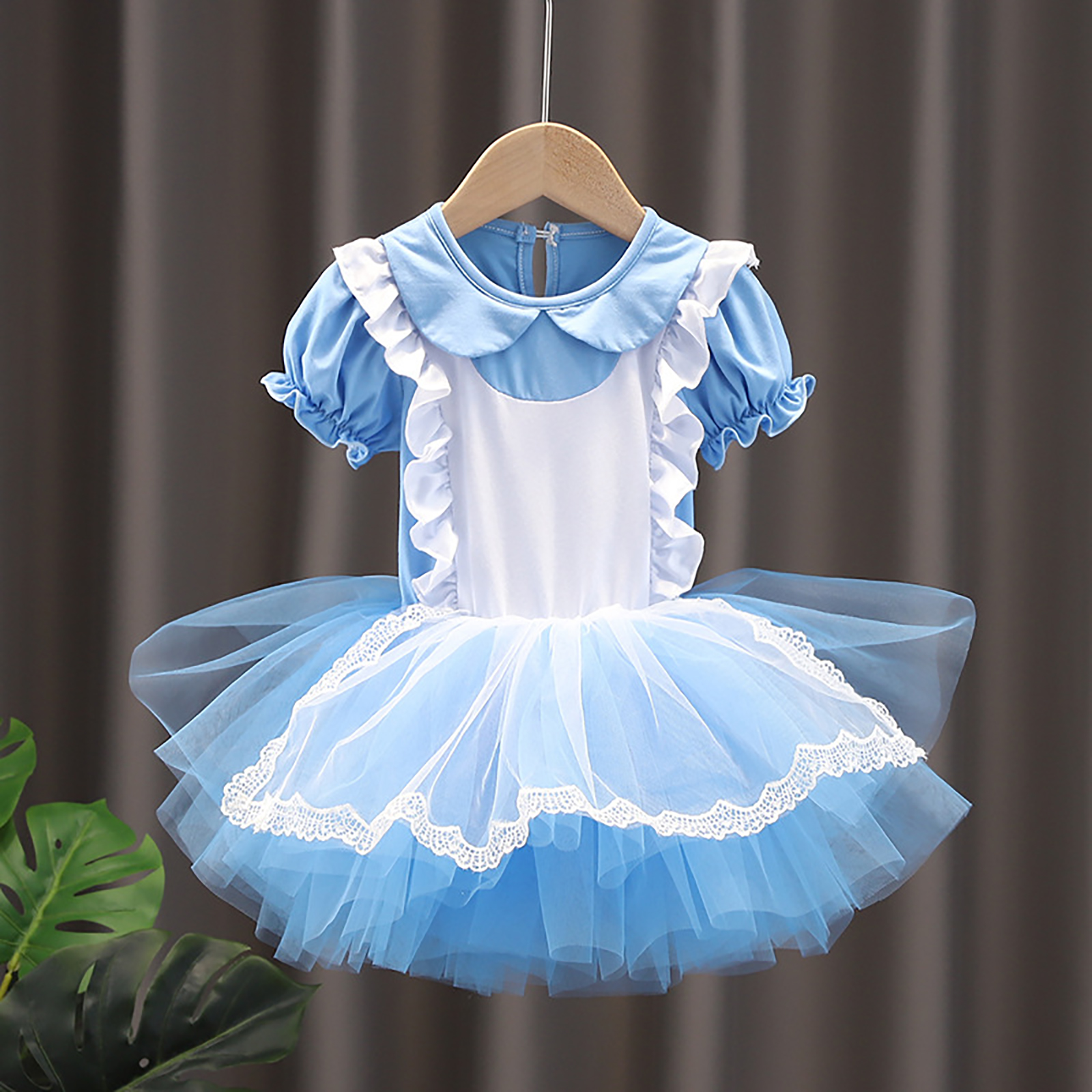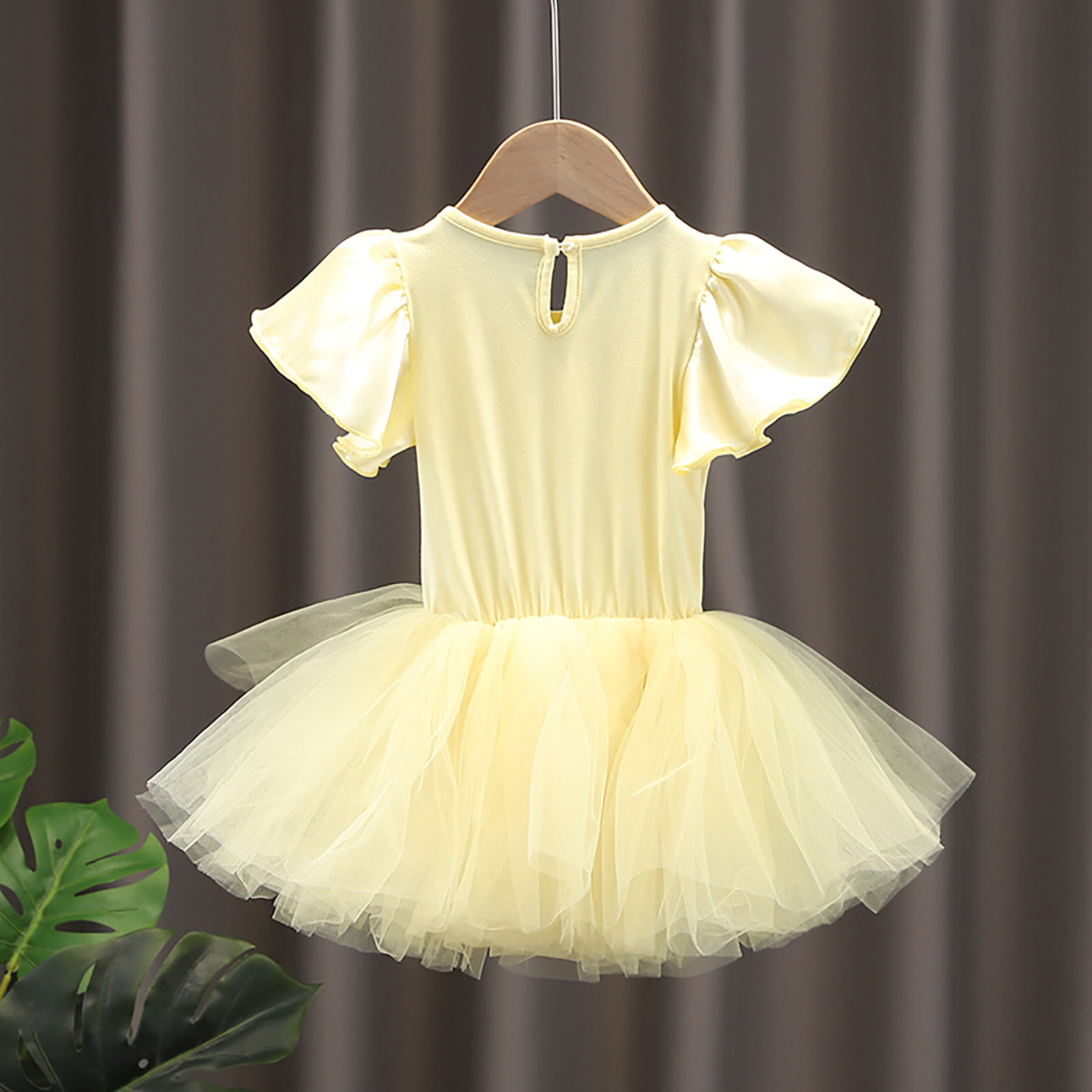 Детское цельнокроеное платье-пачка для девочек Тюлевое платье принцессы с круглым вырезом и короткими рукавами с рюшами и металлическими защелками для танцевальных выступлений.
