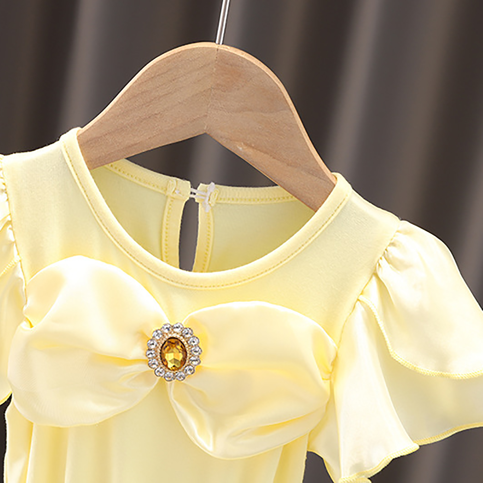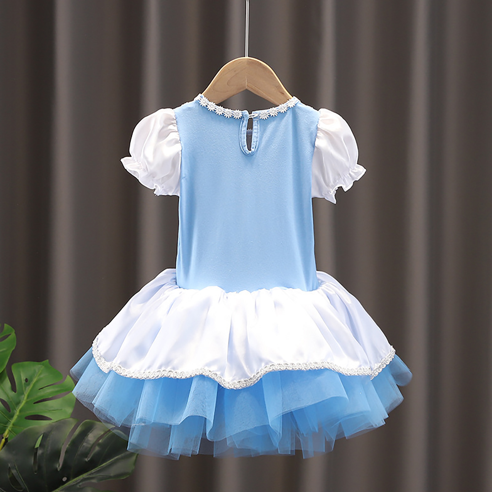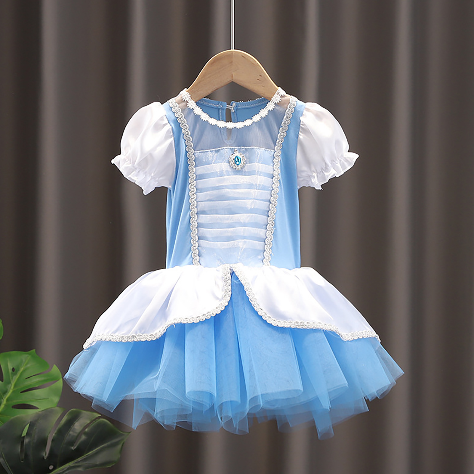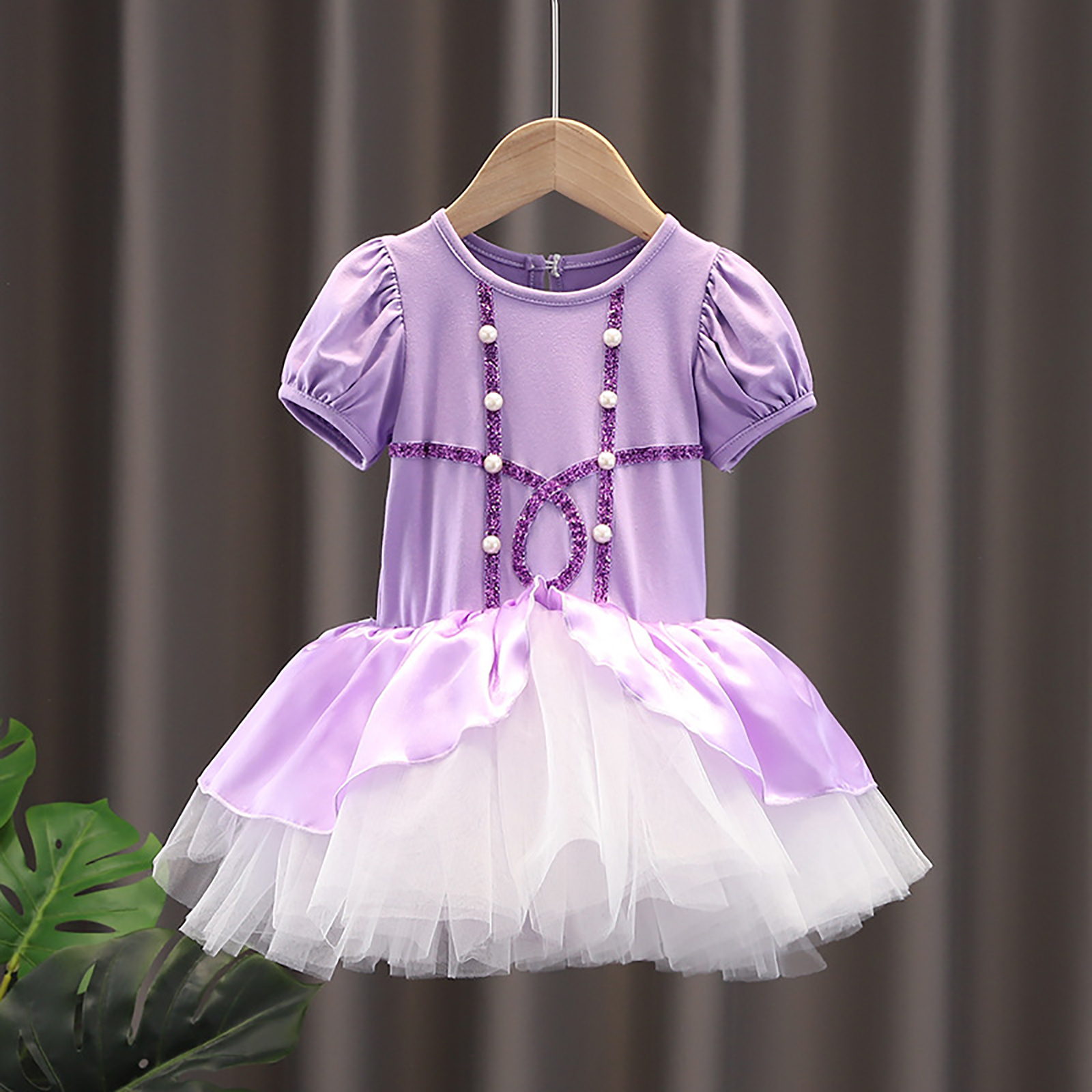 Детское цельнокроеное платье-пачка для девочек Тюлевое платье принцессы с круглым вырезом и короткими рукавами с рюшами и металлическими защелками для танцевальных выступлений.