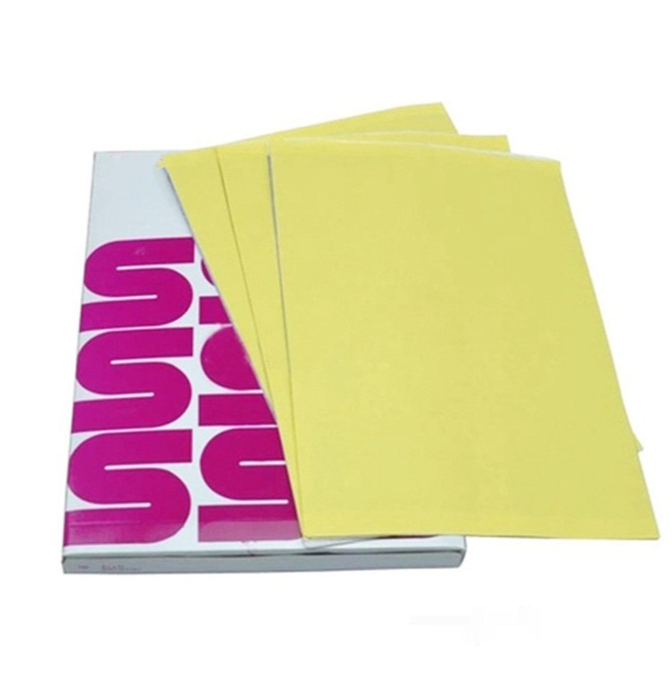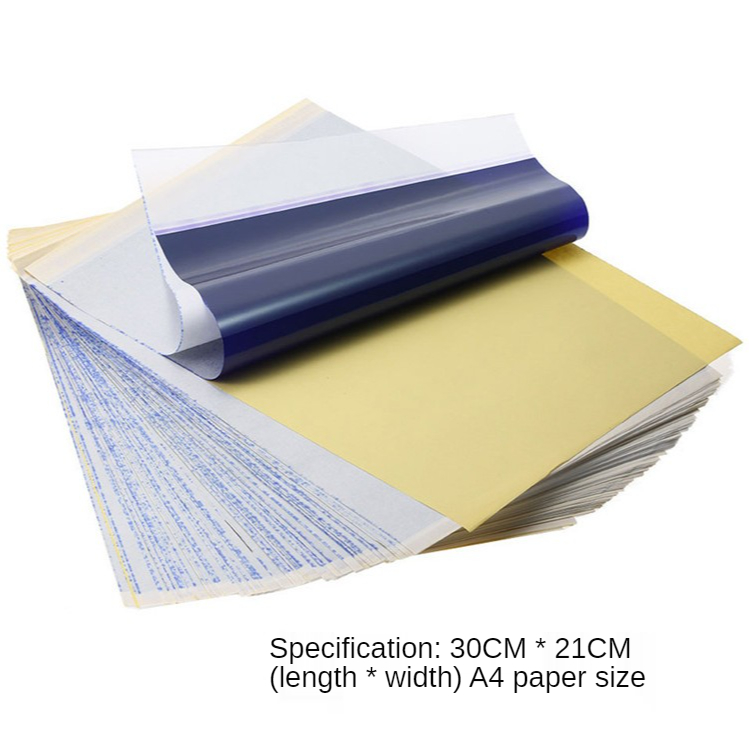 4) Желтая подложка также может быть использована с матричными принтерами, или вы можете нарисовать свои трафареты вручную. Бумага используется с термокопировальной машиной. Нанесение тепловой энергии для копирования изображений на бумаге, а затем передача на кожу. Бумага специально покрыта для защиты рук/одежды