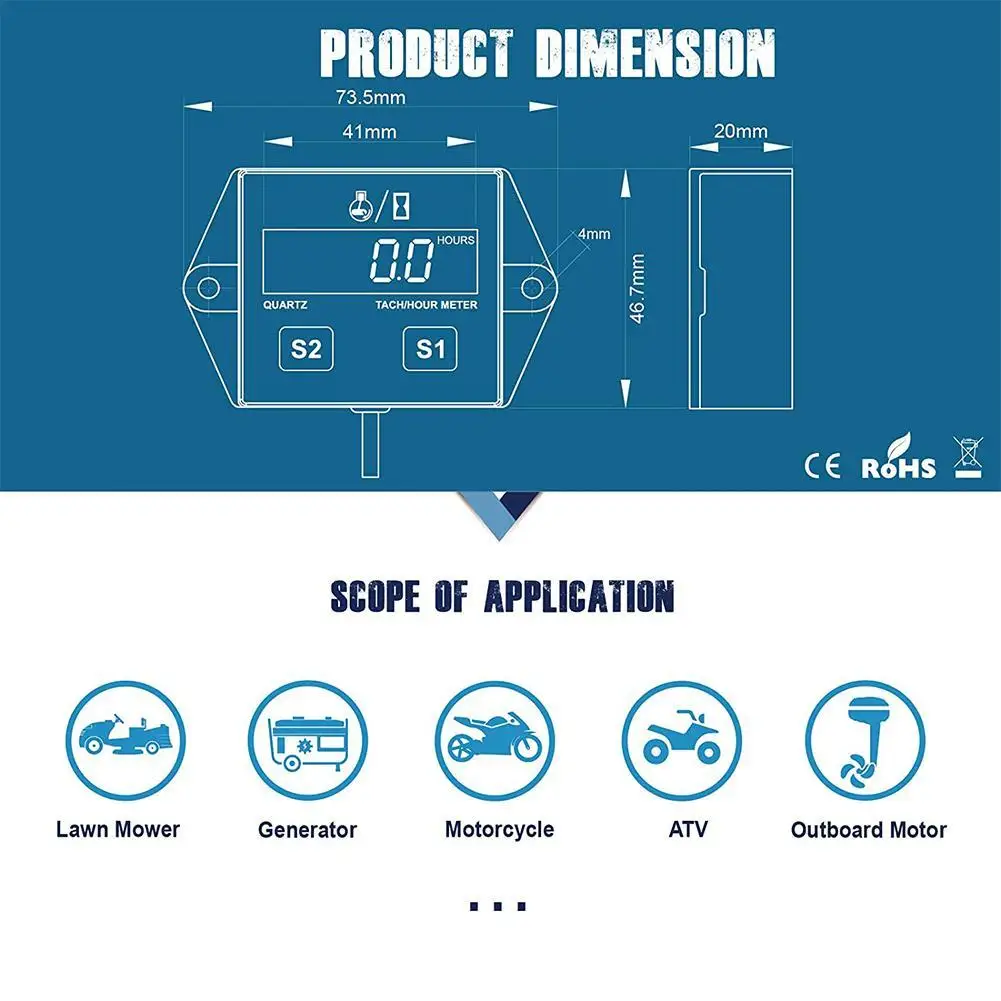 New Tachometer Hour Meter For Motorcycle ATV Snowmobile Boat Gasoline Engine