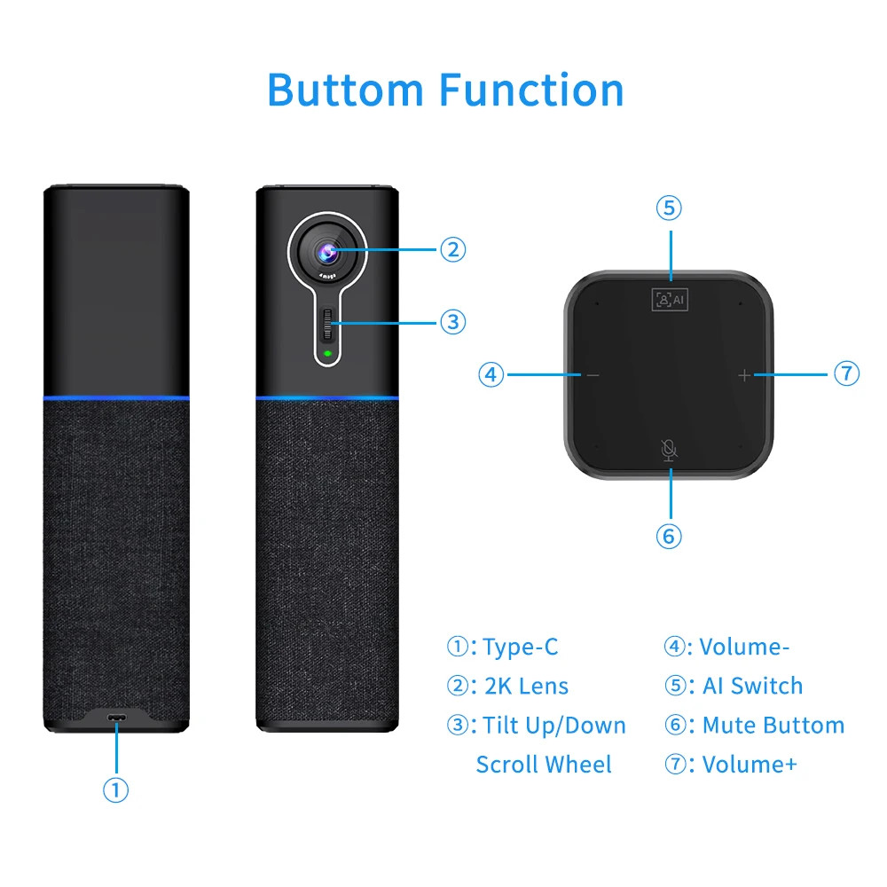 TEVO-CM1000 ConferenceCam provides you a true face-to-face meeting experience by delivering 2K resolution video with crystal clear audio. Powered by cutting-edge AI technology, TEVO-CM1000 video conferencing system automatically focuses on the current speaker. When there are different active speakers involved, it can focus on all participants into one video. AI Intelligent camera, 2k/1080P/720P HD video resolution, integrated wideband audio speakerphone with noise cancellation and 4 full duplex omni-directional mics, CM1000 can pick up to 16 feet. It allows you to easily see everyone’s face and hear what they say clearly with the integrated audio system. Driver free, USB plug&play connectivity, this webcam is suitable for huddle and medium rooms for small meeting. TEVO-CM1000 conference webcam ensures all remote participants to have an inclusive face-to-face meeting experience, working perfectly with any video and audio conferencing platforms like Skype, OBS, Microsoft Team, Cisco WebEx, Zoom, Slack, GoToMeeting etc. And it is compatible with Windows 7/8/10, MacOS & IOS, Linux, ChromeOS, and Android systems.