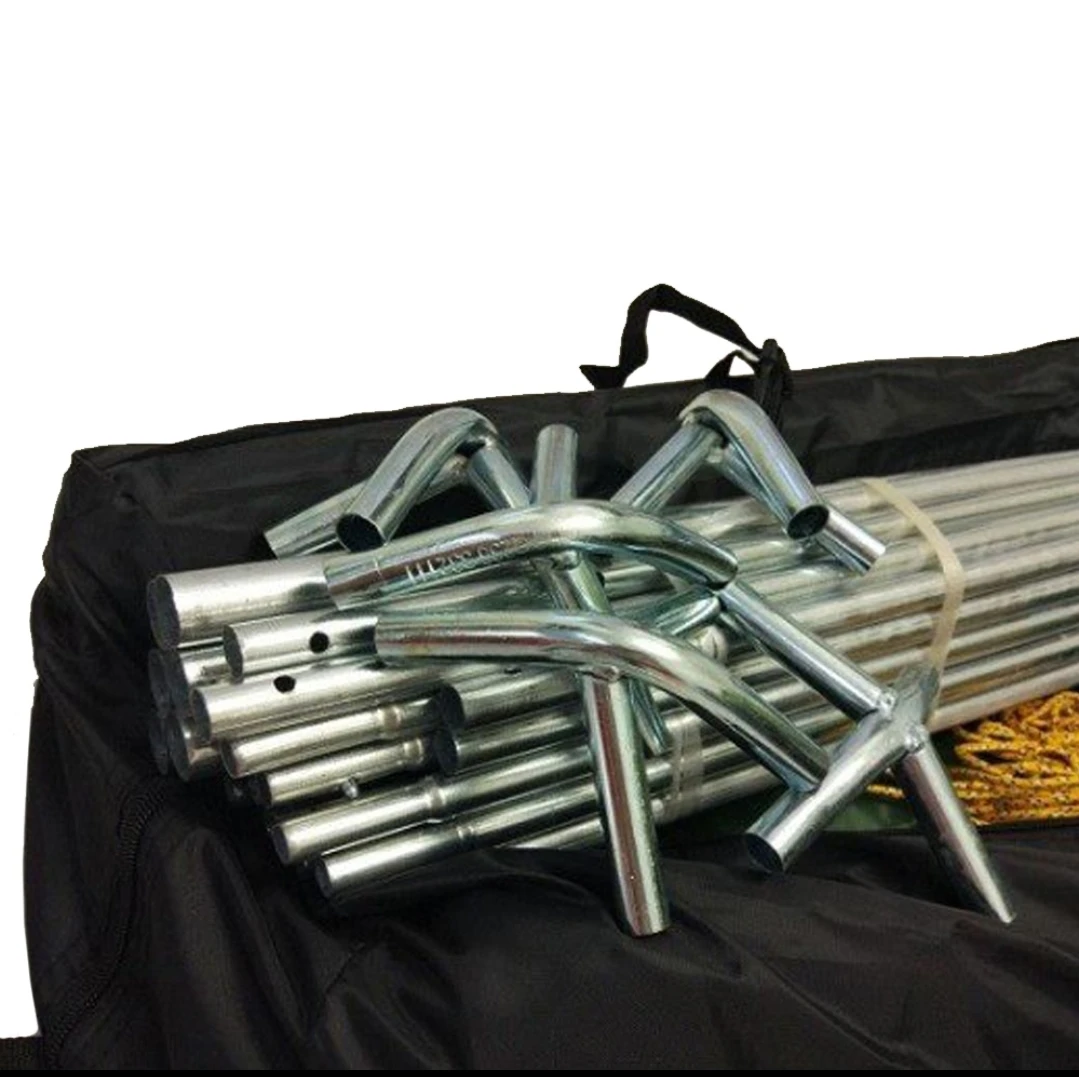 Натяжные тросы, колышки и металлические коннекторы и пятки в комплекте беседки.