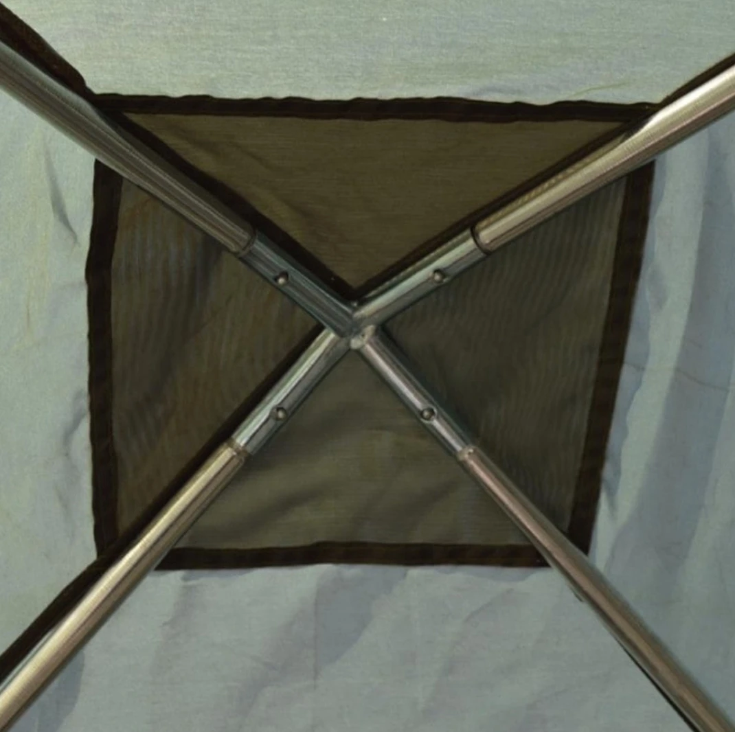 Дна в шатре нет, поэтому смело можно размещать любую туристическую мебель не боясь повредить или испачкать обувью пол палатки.