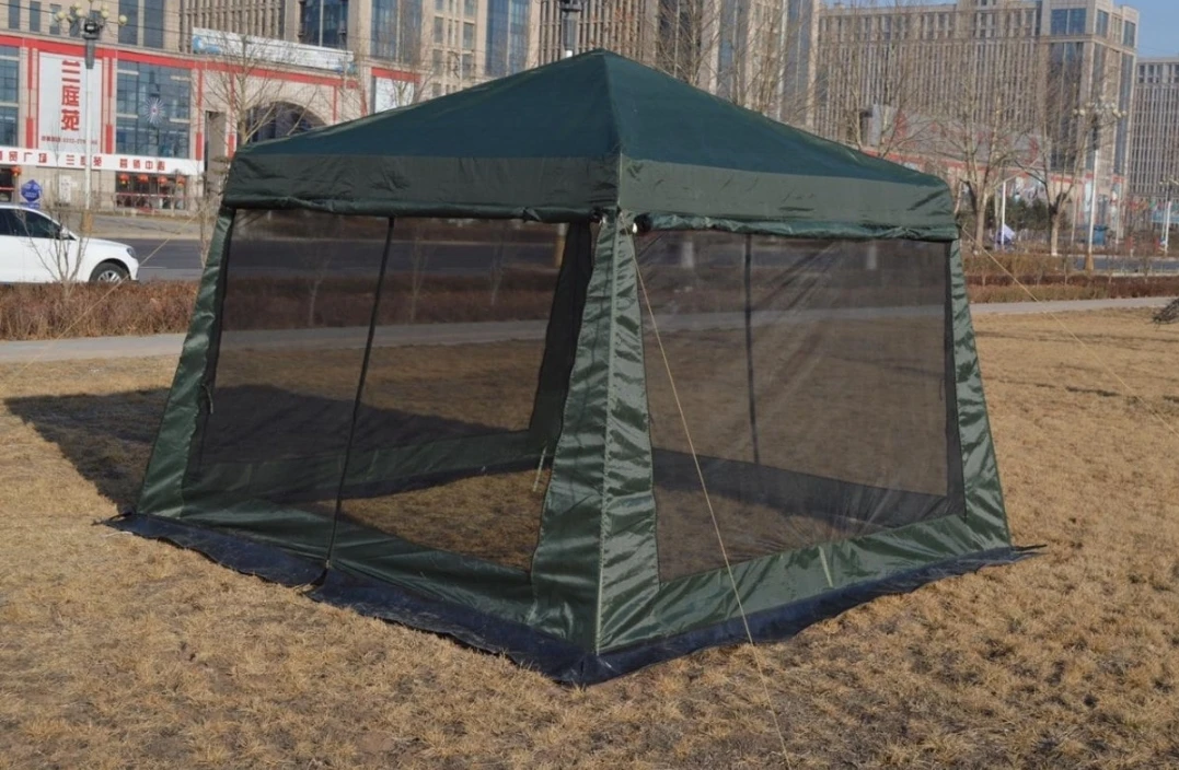 Палатка с антимоскитными сетками со всех сторон и с одной стороны закрывается молнией.