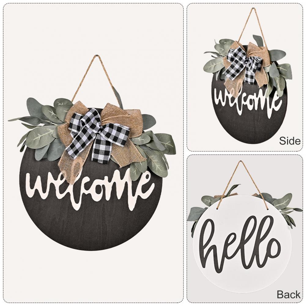 С характеристиками декора венка и изысканным внешним видом, дверной знак легко сочетается и идеально подходит для подвешивания на стене на Передней Двери крыльца, задней двери, гостиной, спальни, прихожей, мантел или наклоняется на полку или в любом месте по всему дому.