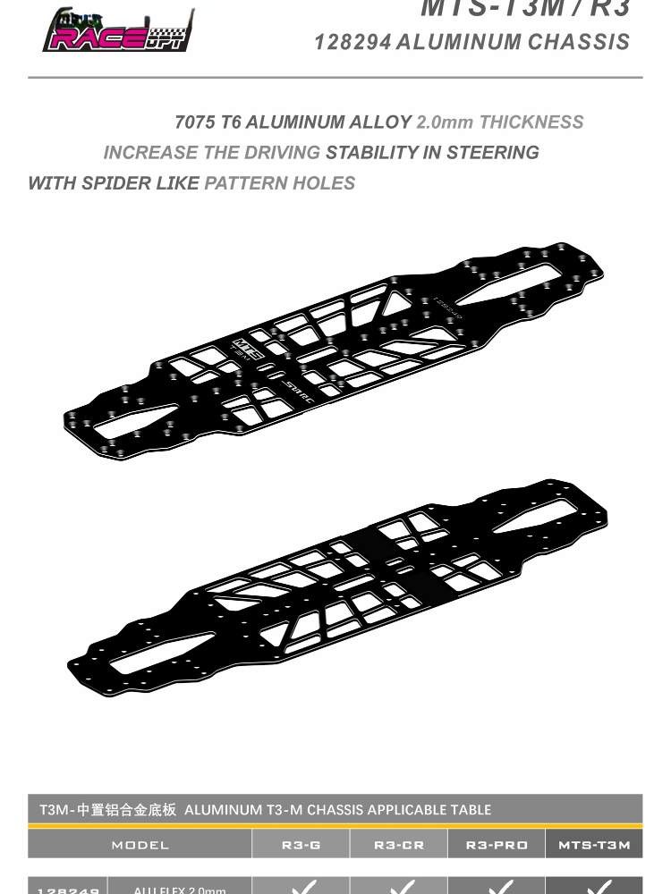 SNRC 128249 1/10 T3M 60612,0 мм + pa 2,0 мм ALU шасси-MTS T3M/R3