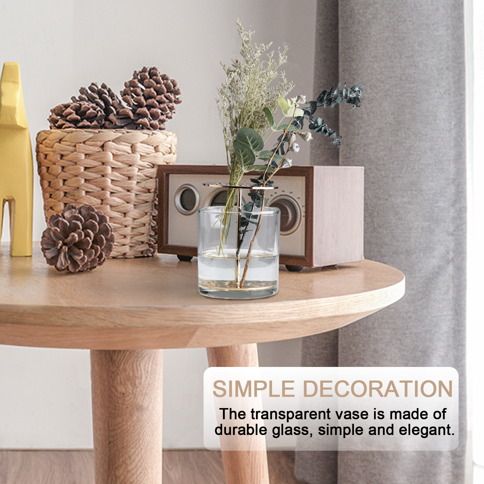 1. Прозрачная ваза изготовлена из прочного стекла, простой и элегантный.