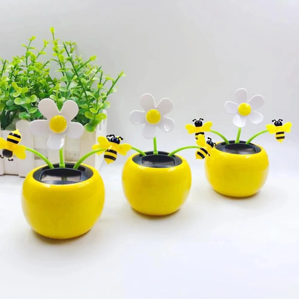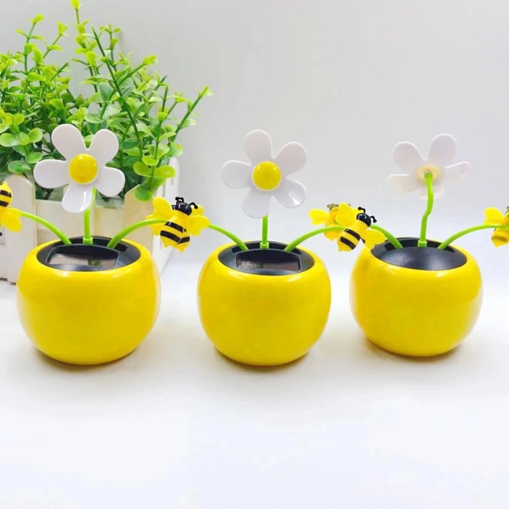 Горячая креативная пластиковая Солнечная энергия цветочный автомобиль орнамент откидной клапан горшок качели Детская игрушка пчела цветок дизайн интерьера автомобиля Декор для подарка