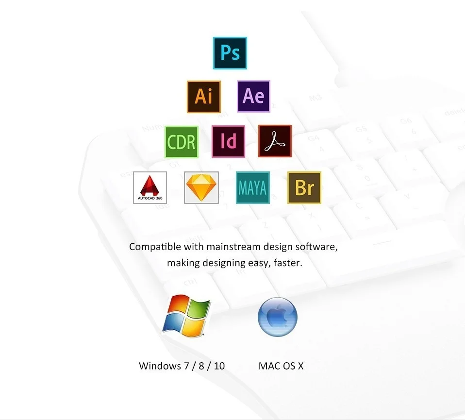 -Три группы клавиш ofM1/M2/m3 от драйвера, каждая группа имеет 9 (G1-G9) клавиш быстрого доступа для основного программного обеспечения дизайна
