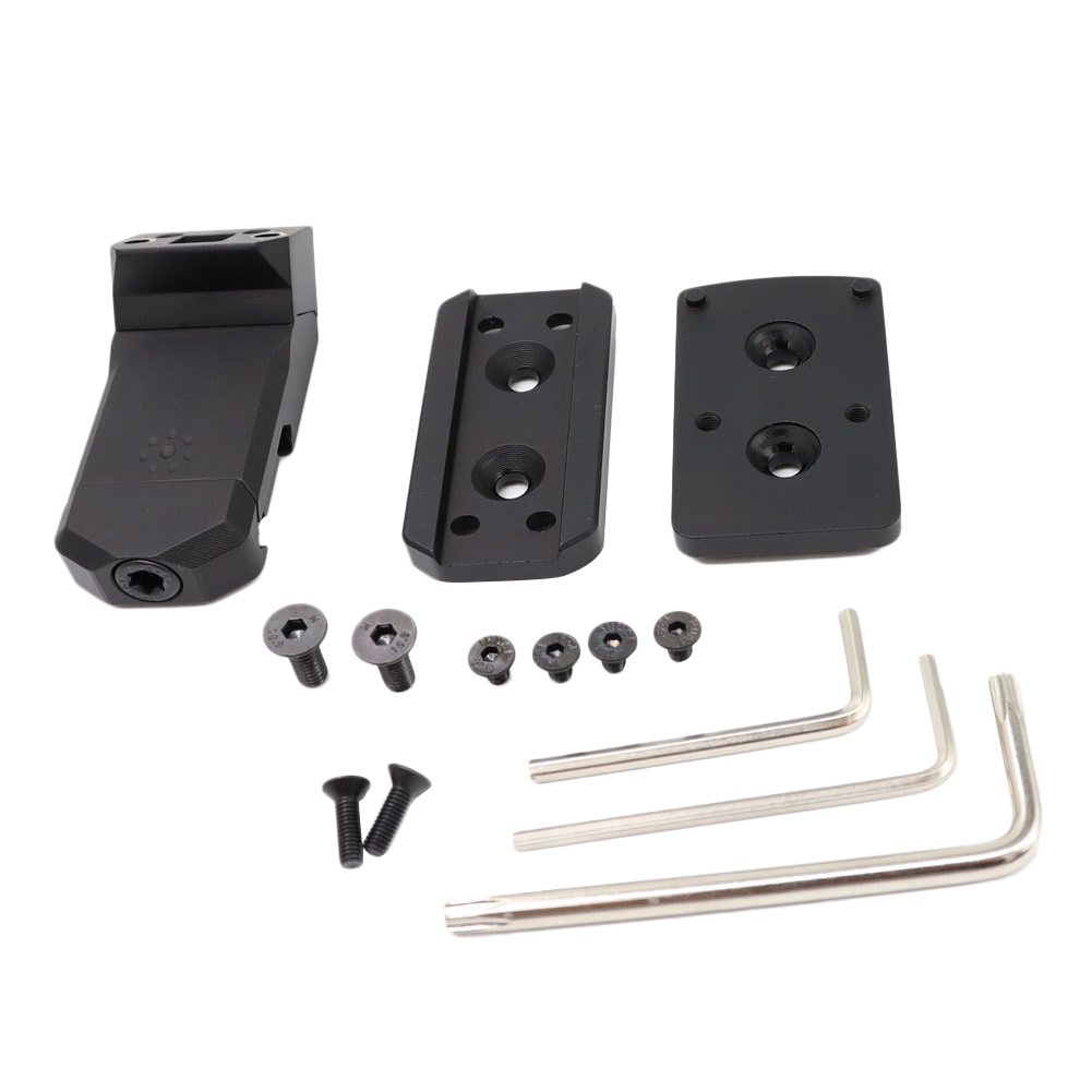 * 1. [Профессиональное авиационное алюминиевое офсетное крепление для оптики] офсетное оптическое прицельное крепление включает в себя 1 основание, 2 пластины, 6 крепежных винтов и 3 гаечных ключа.