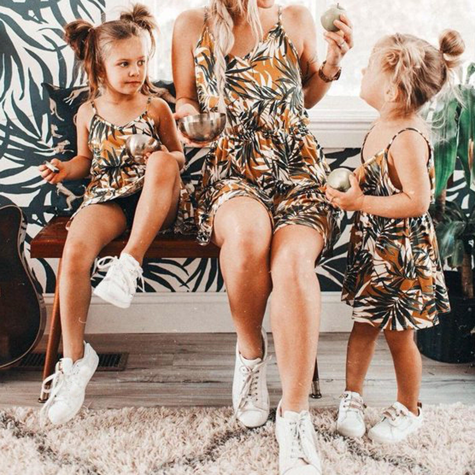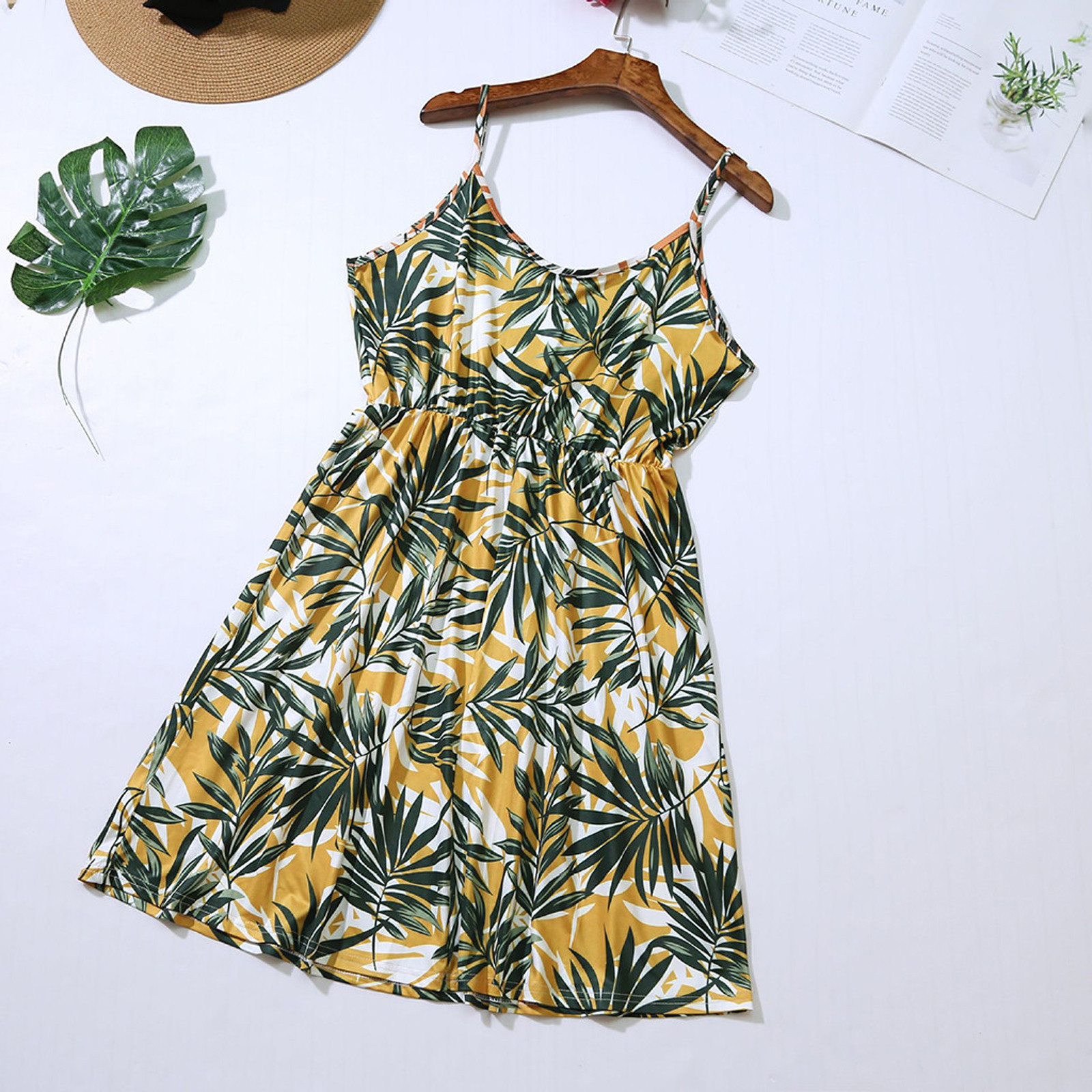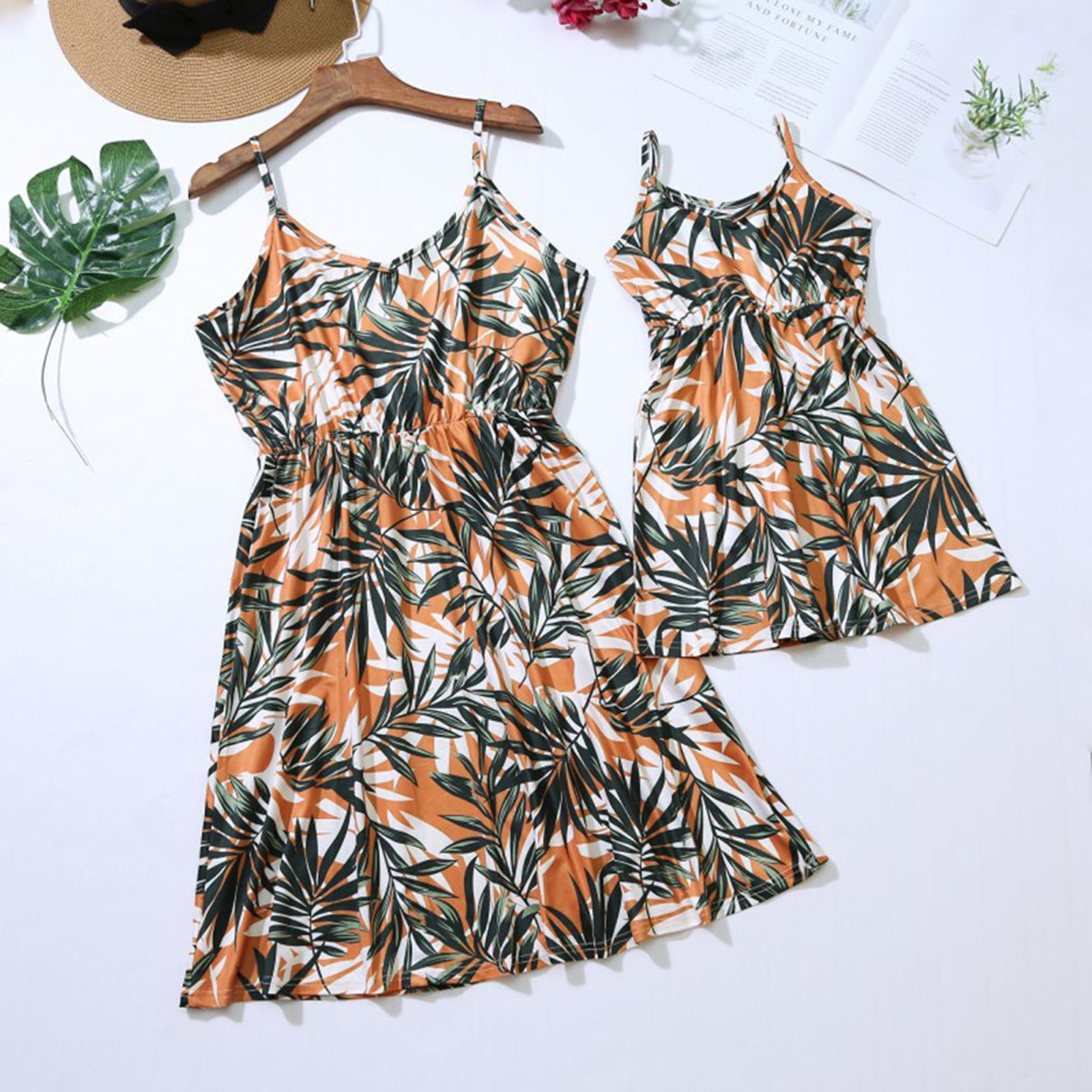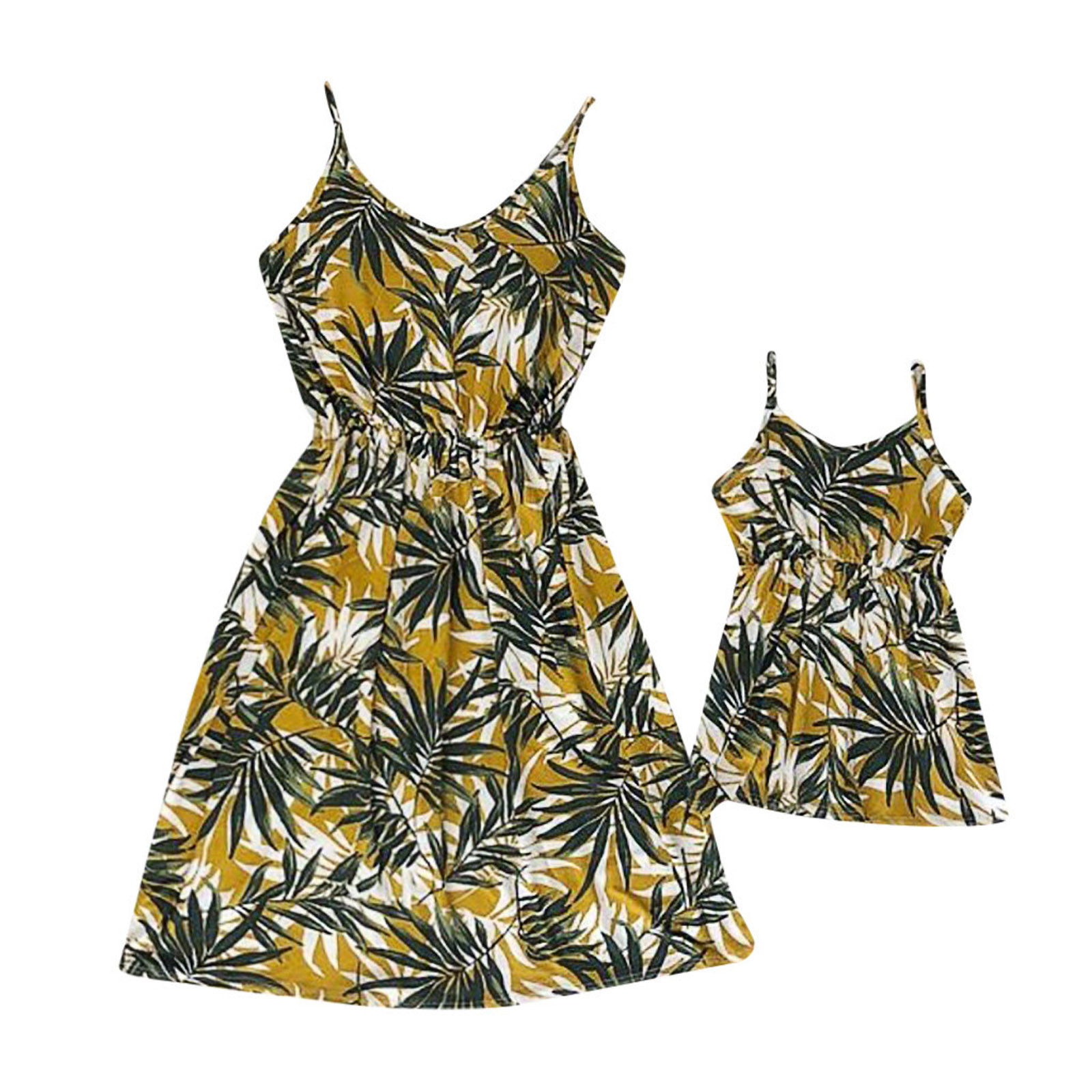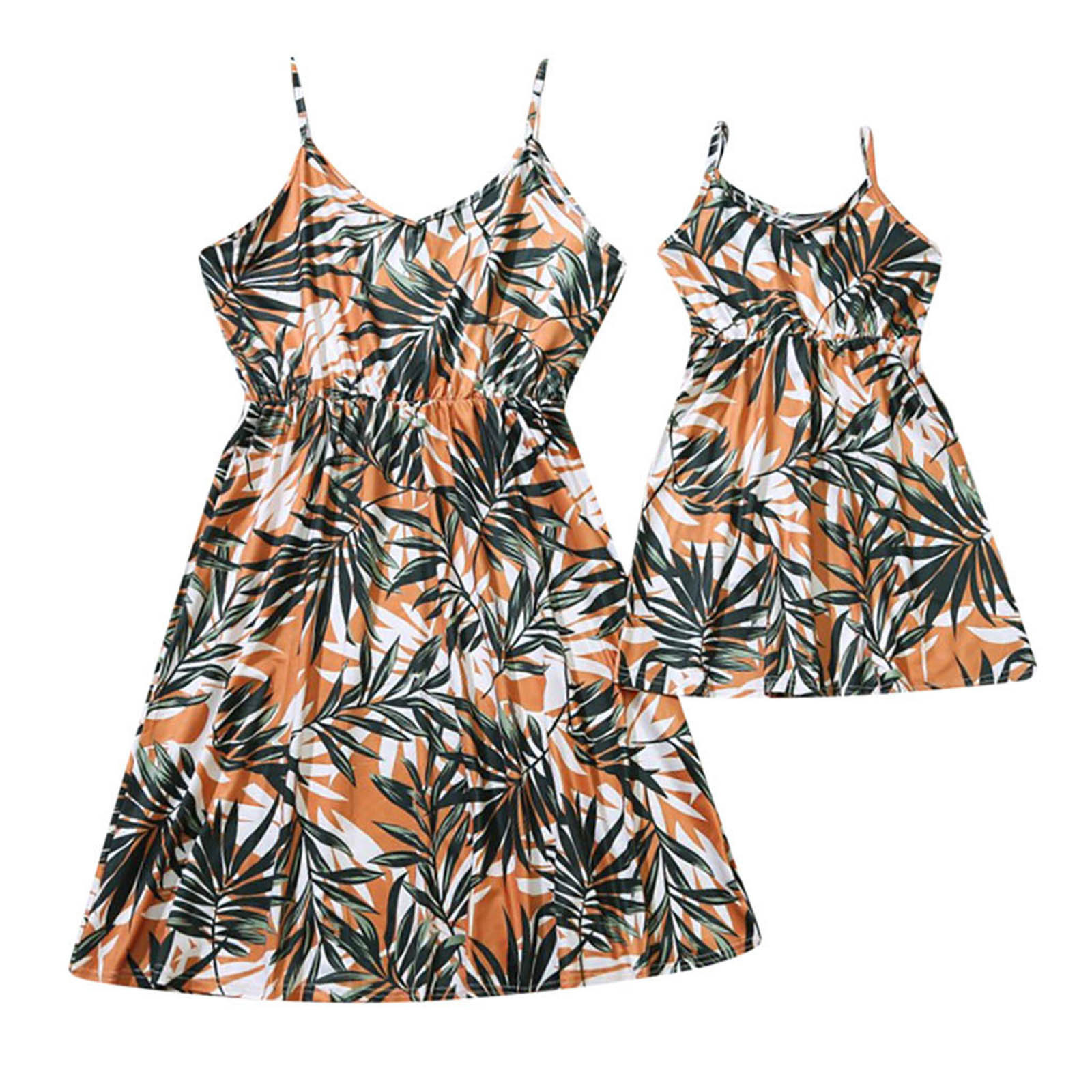 Летнее модное Повседневное платье с принтом в виде листьев для мамы и женщин