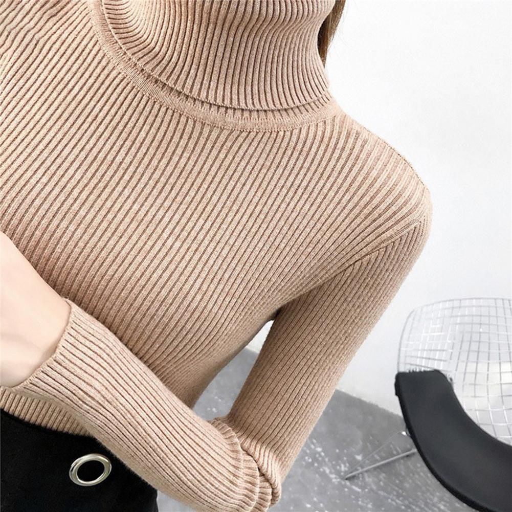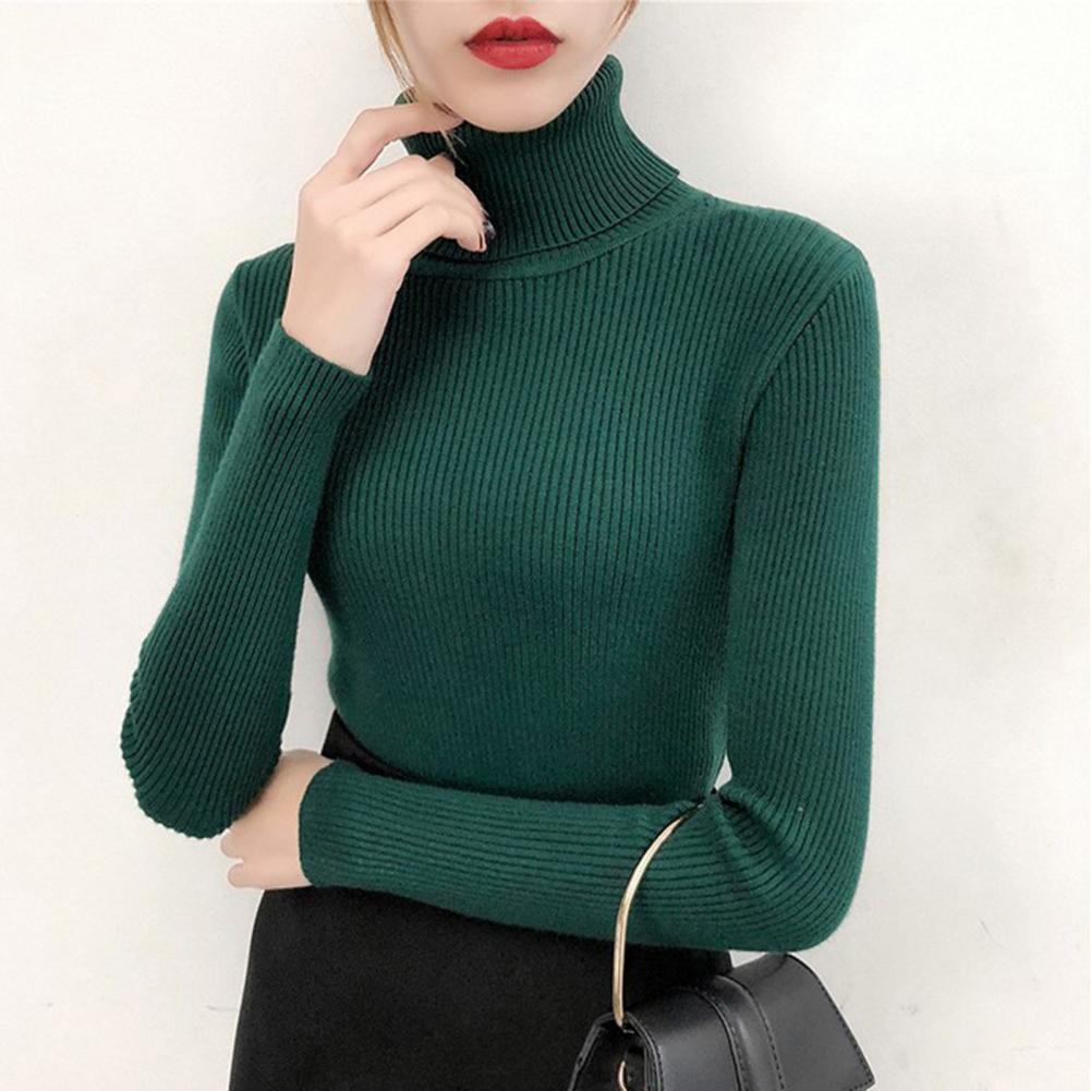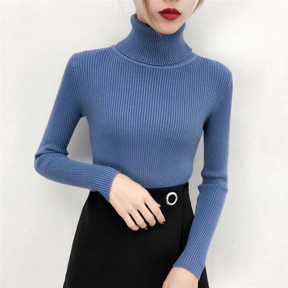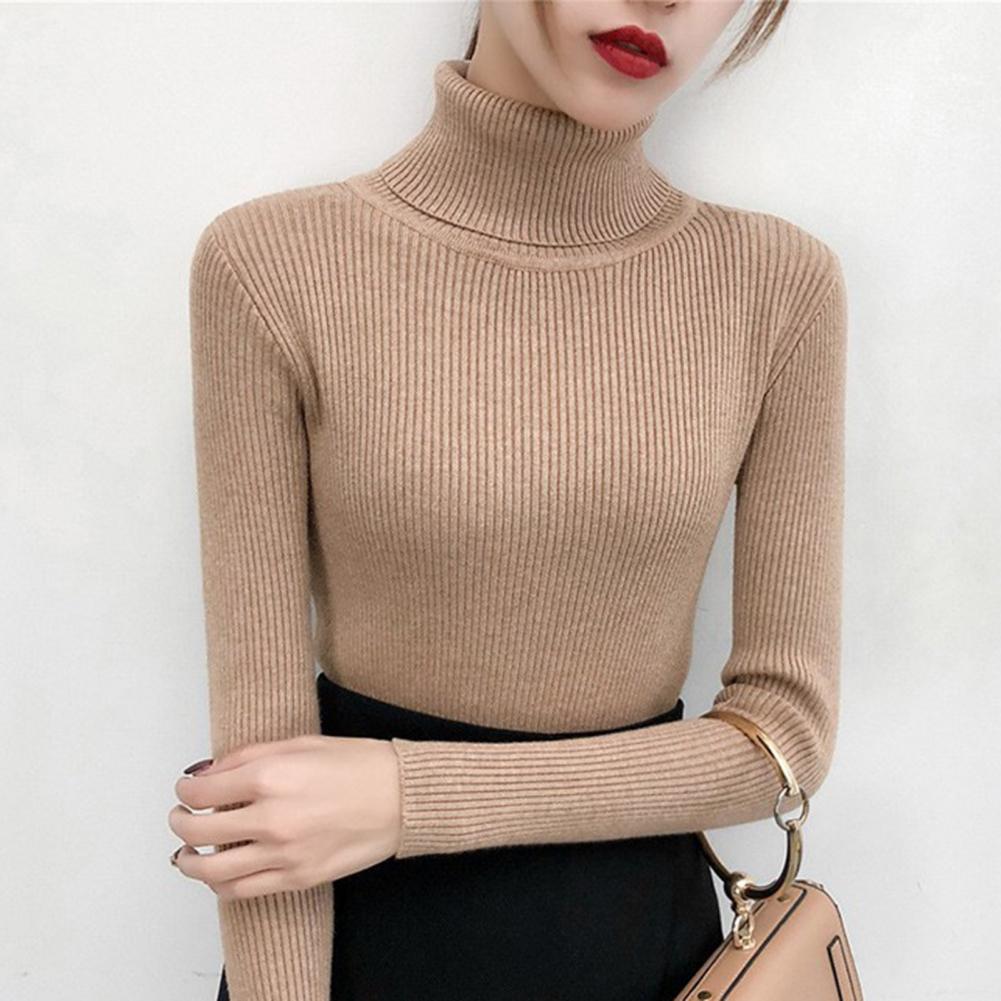 Женский свитер, однотонный эластичный облегающий вязаный пуловер с высоким воротником, Повседневная теплая уличная одежда на осень и зиму