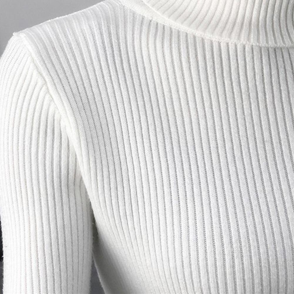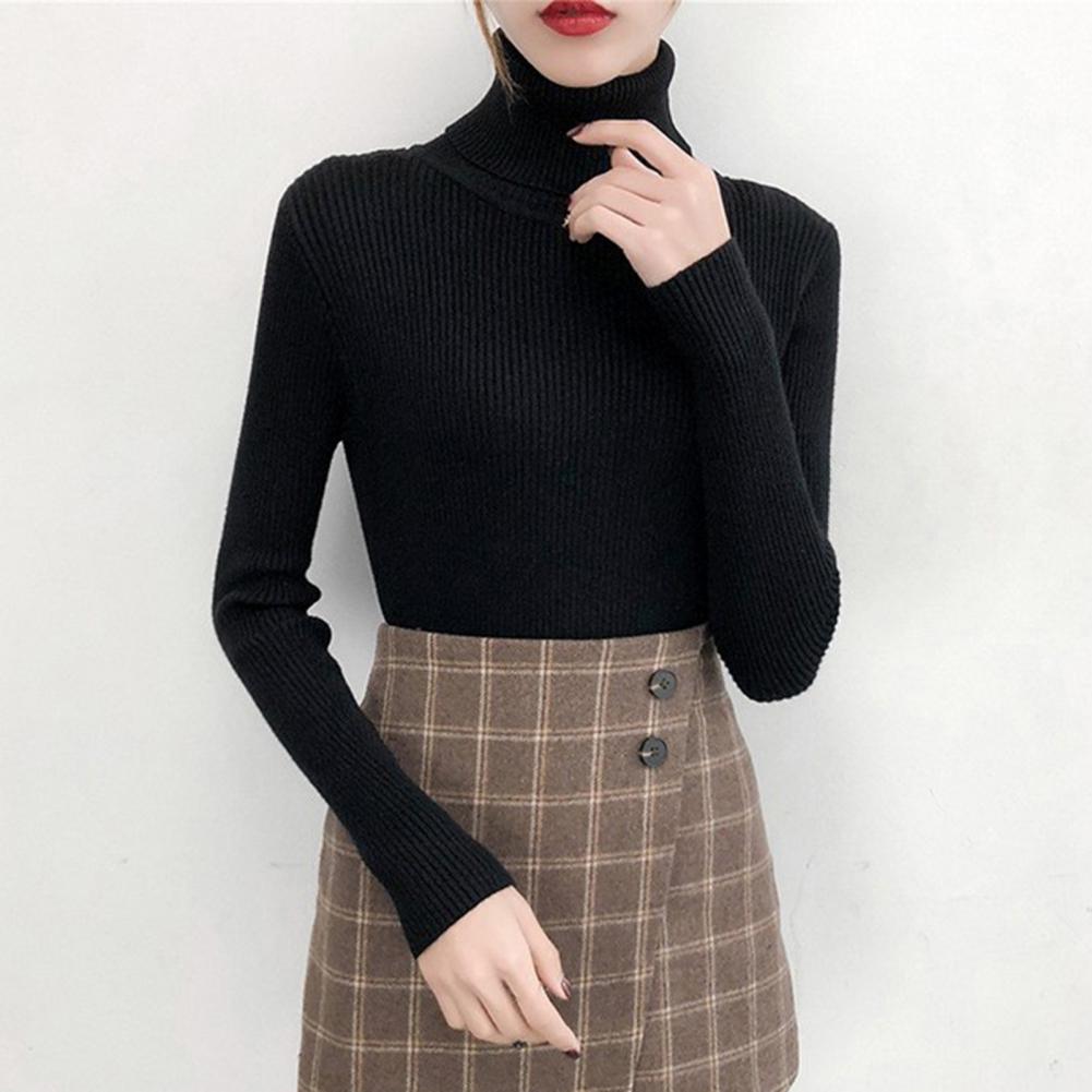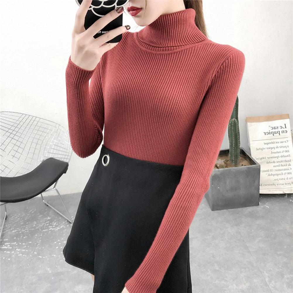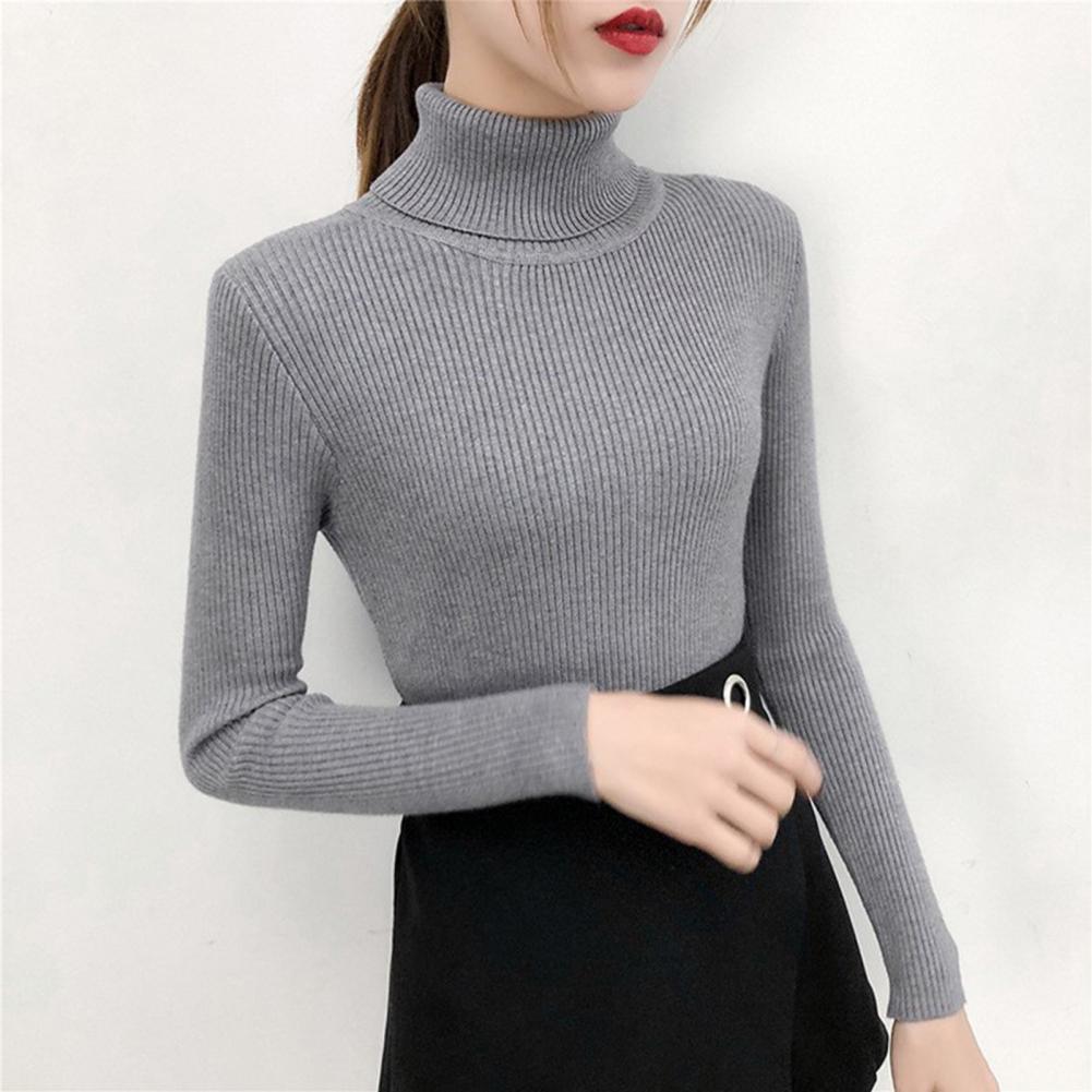 Женский свитер, однотонный эластичный облегающий вязаный пуловер с высоким воротником, Повседневная теплая уличная одежда на осень и зиму