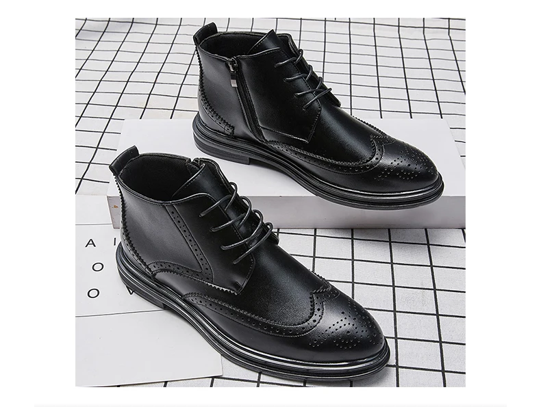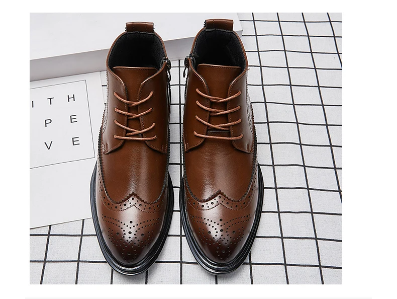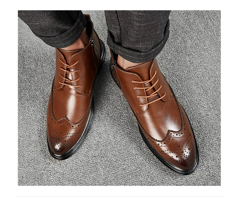 OZERSK/мужские ботинки; Зимние теплые мужские ботинки; Мужская кожаная обувь с перфорацией типа «броги» на молнии; Деловые ботильоны; Обувь; Новинка 2022 года; Большие размеры 38-46