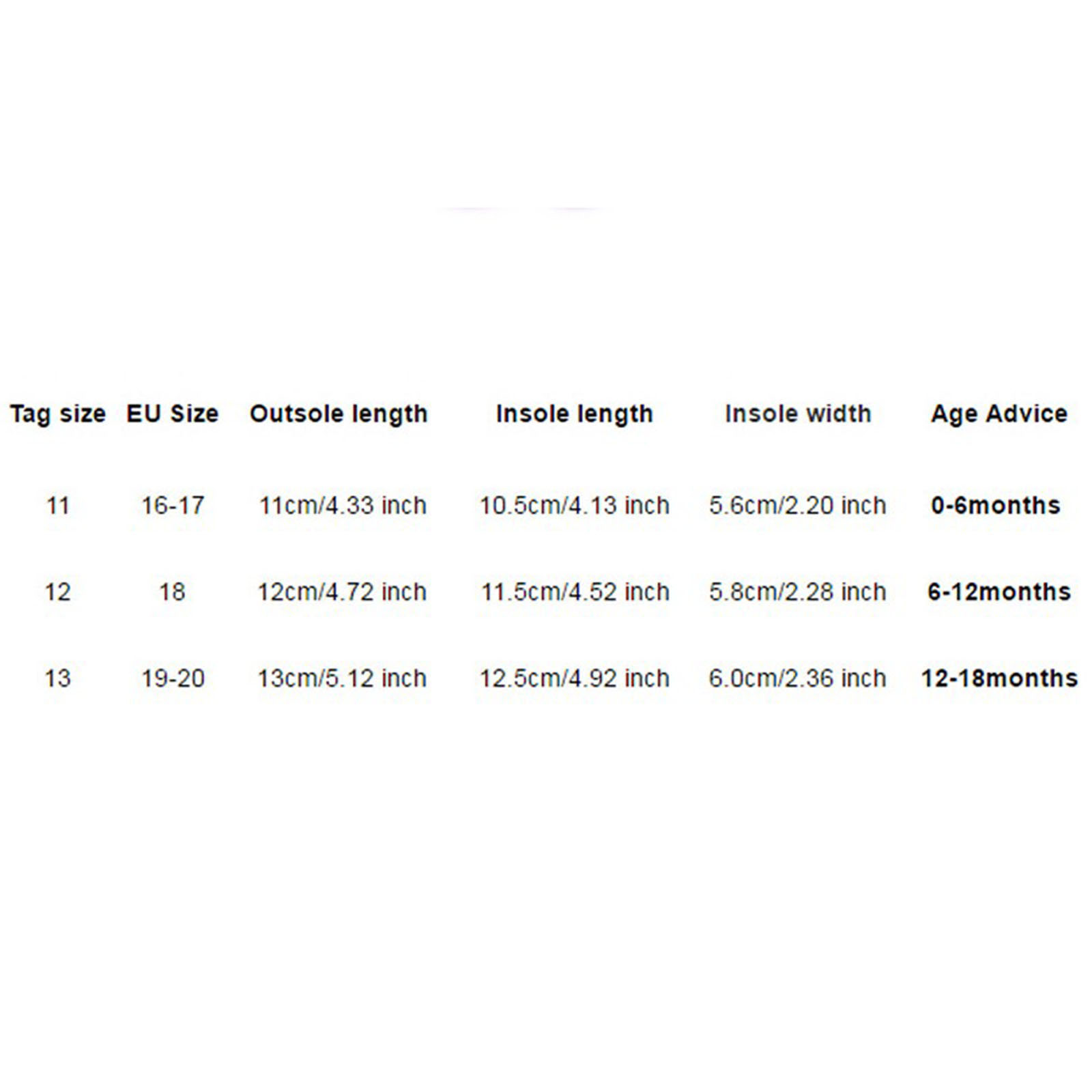 1. Длина подошвы: 11 Длина стельки: 10,5 Ширина стельки: 5,6 Рекомендуемый возраст: 0-6 месяцев