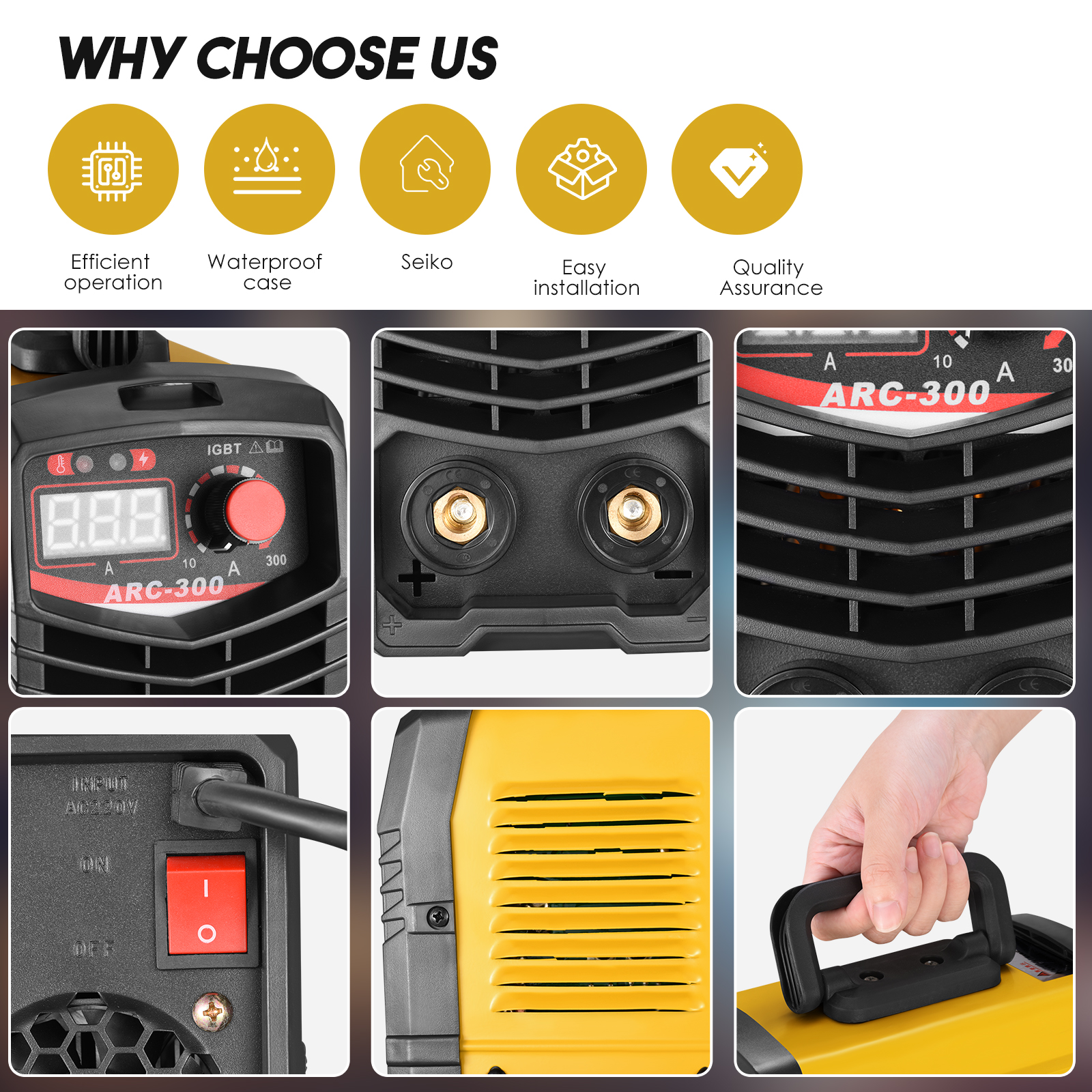 【300安培6000瓦功率,高效节能/实现高功率运作】我们的弧焊机为300安培220V,交直流逆变焊机,电流输出稳定,铜铁损耗大幅降低,焊接效率和节能效果明显提高。它可以承受全天焊接。弧焊机可以完美处理1.6mm-3.2mm焊条的全天焊接,4.0焊条普通焊接也可以做到,是一种高频度高、工作效率高的智能家居焊接。适用于焊接不锈钢、合金钢、碳钢等金属材料。