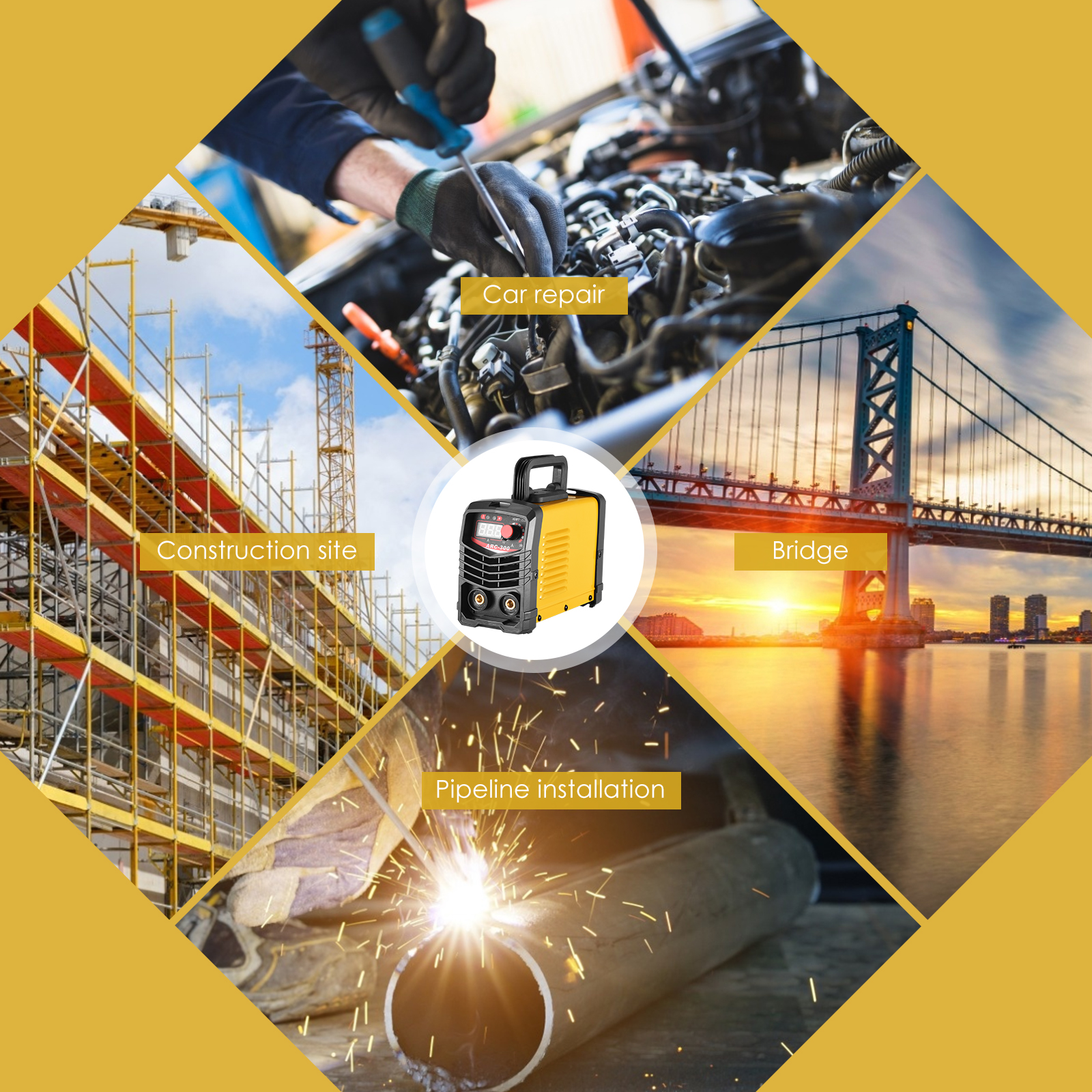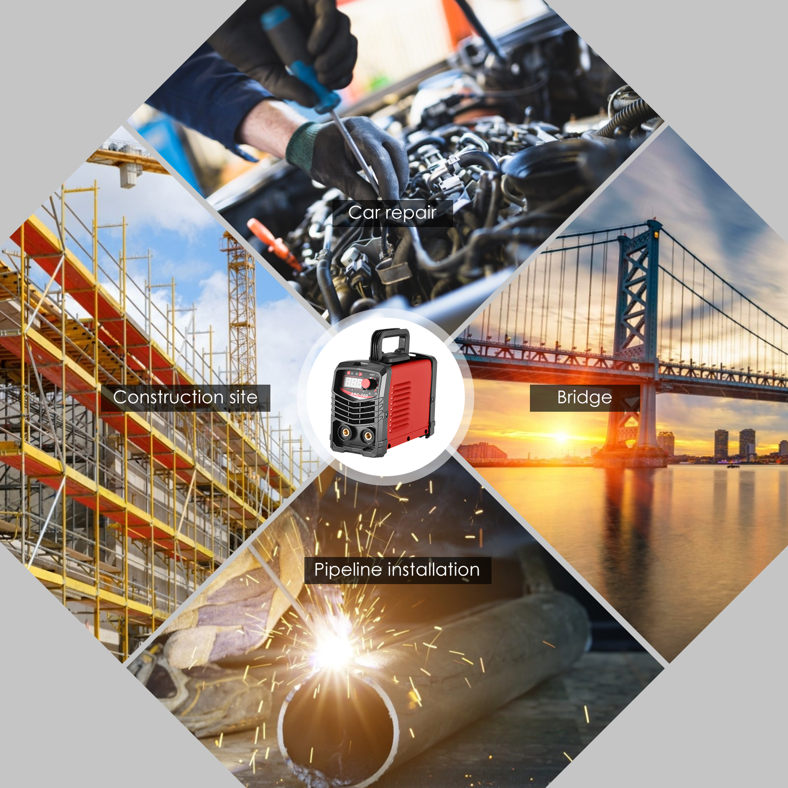 【操作简单/初学者、专业人士通用/使用范围广泛】焊机适配2.5mm以下焊条,适用于低碳钢、中碳钢、合金钢等多种铁金属的焊接。全数字控制系统,精确控制,焊接时弧长稳定。易于初学者和专业人士使用。非常适用于户外维护、农业设备、道路设备的维护和维修。该焊机适用于DIY、维护、修理和金属加工用途。