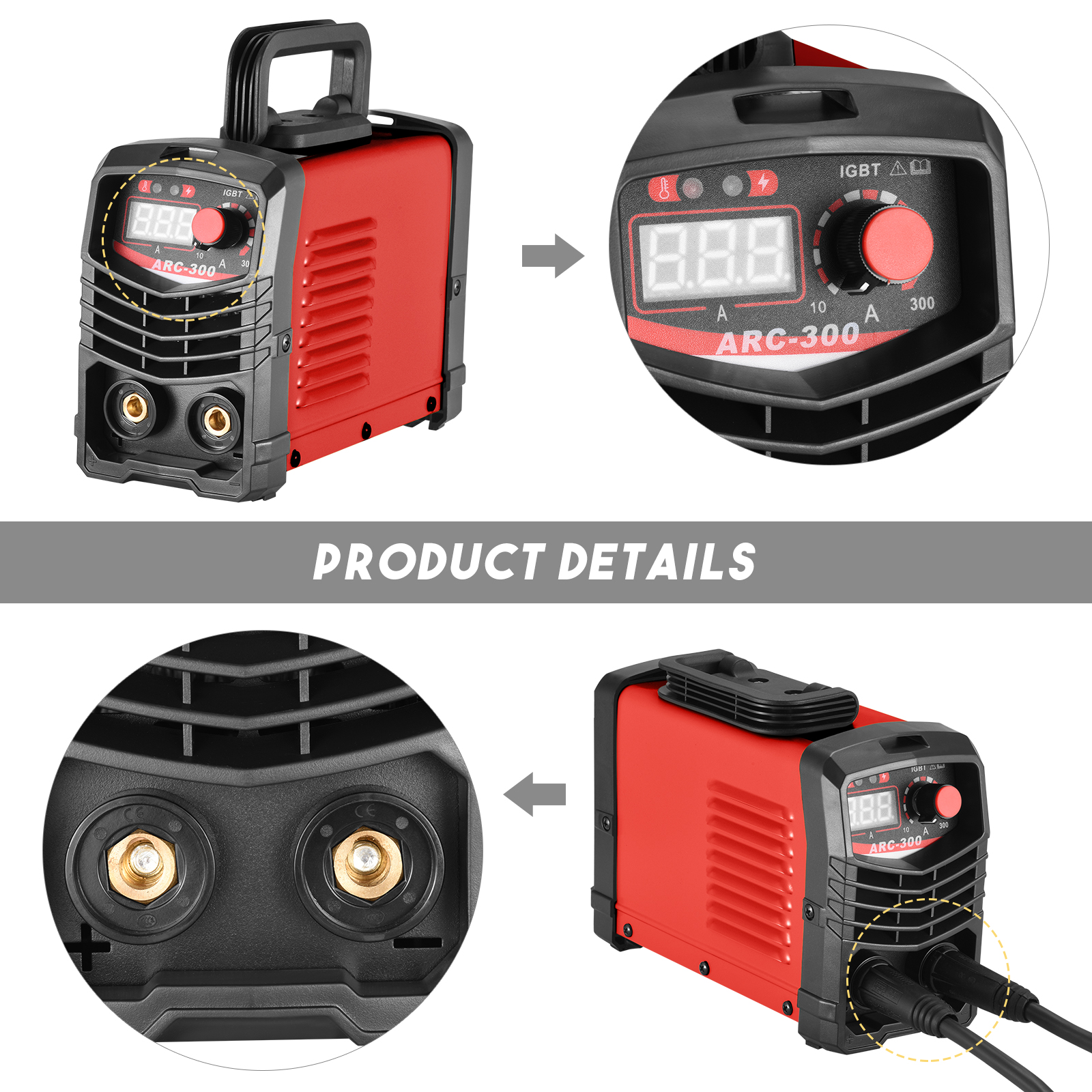 【便携且用途广泛/个性化外观/LCD显示屏】焊接机体积小巧,手柄设计,便于携带和存放。广泛用于户外保养维修、金属加工和DIY;包边的设计不仅使焊机更美观,且更不易破损。智能 LED 使用方便:弧焊使用方便,可用于焊接师傅的练习和小型焊接工作。配备智能数显LED读取输出焊接电流。简单易用,安全方便,适合初学者或专业人士。