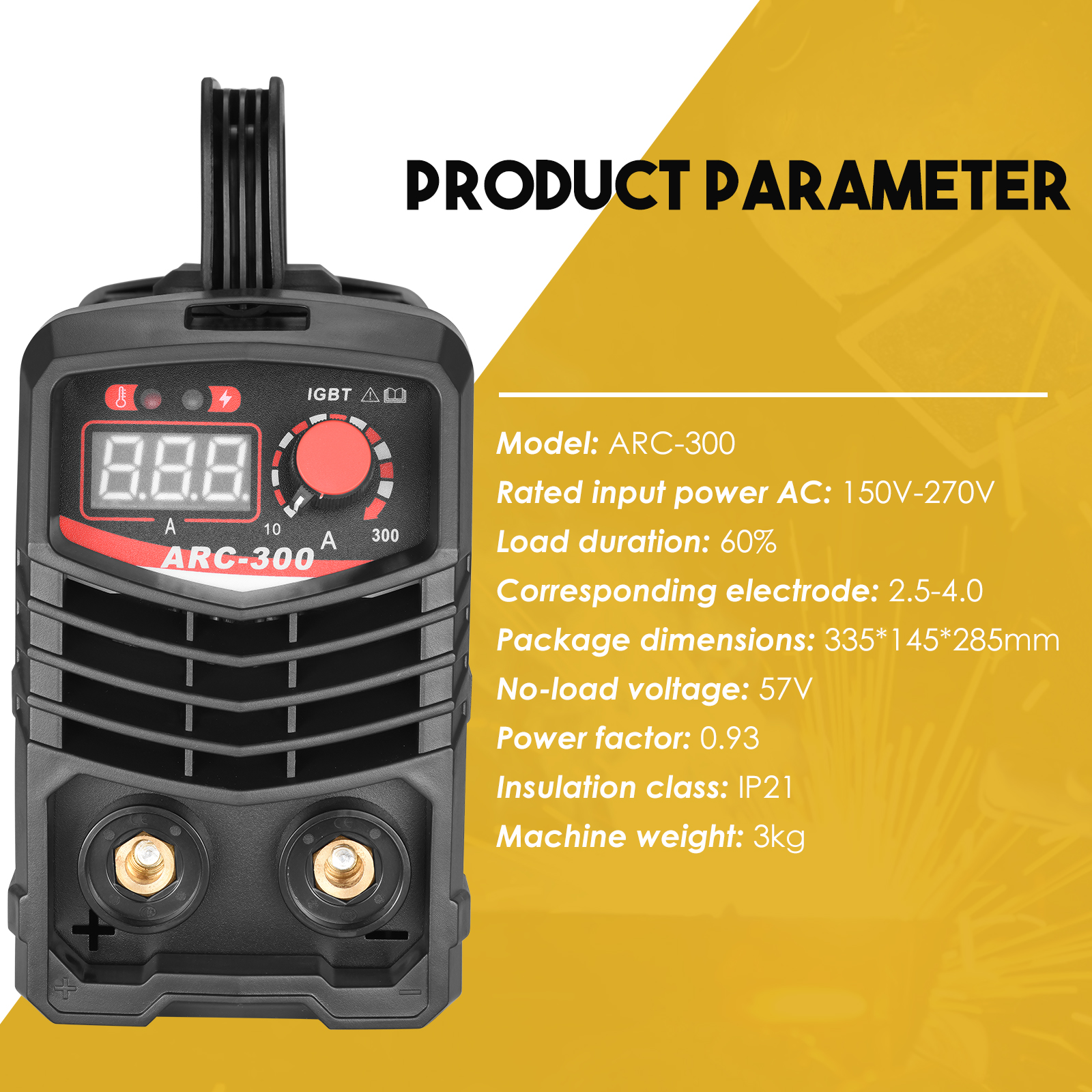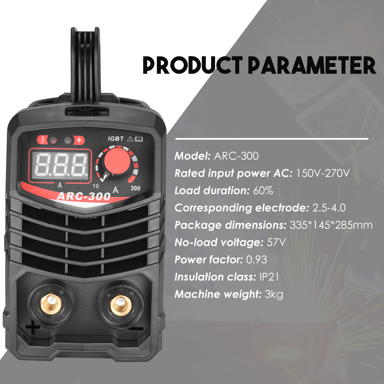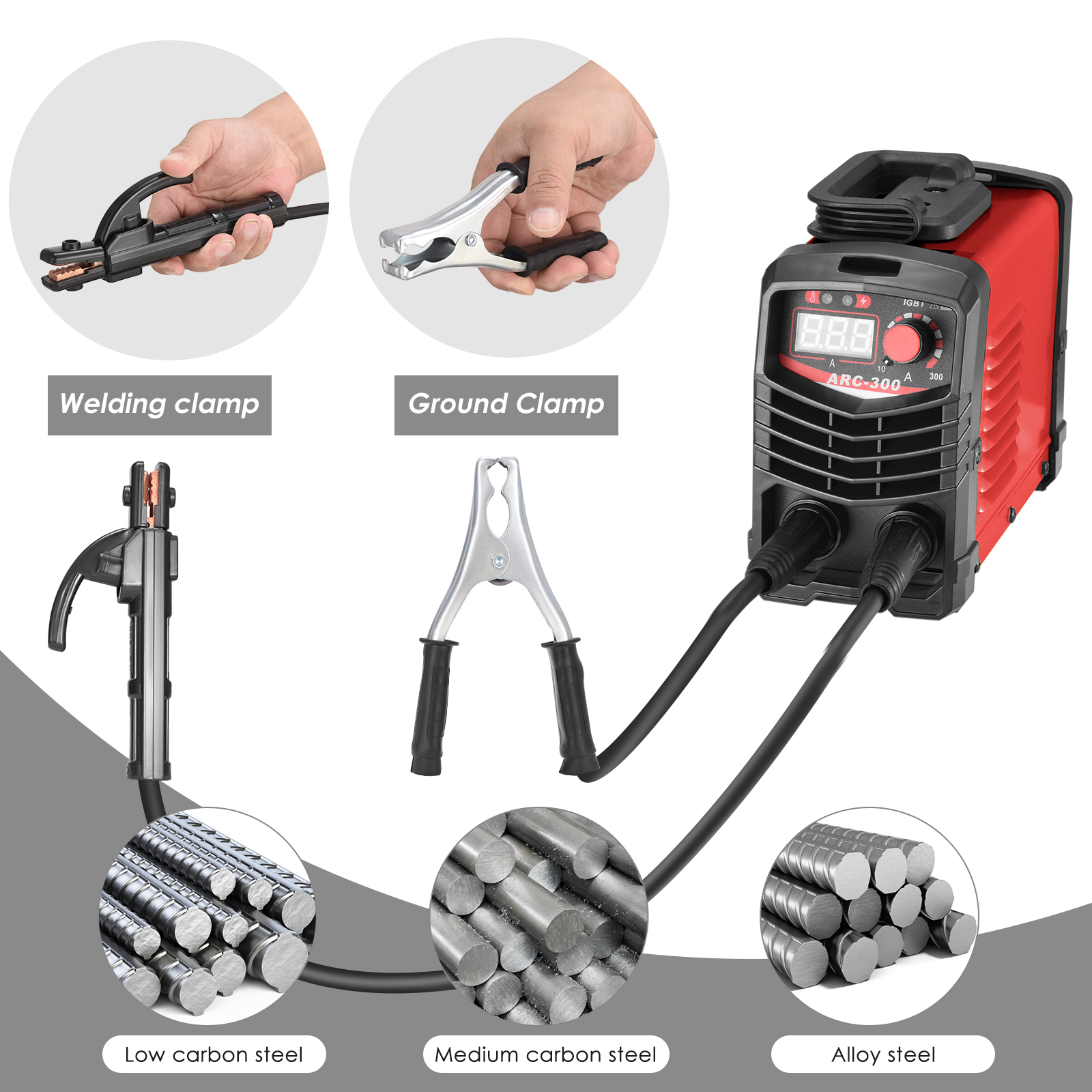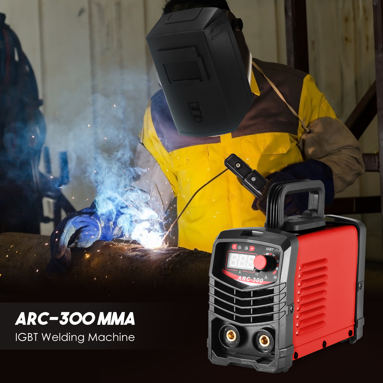 [Complete accessories] 300A arc welding machine kit includes 1 x electric welding machine; 1 x 1.5M work clamp; 1 x steel brush; 1 x mask; 2 x welding rod; 1 x manual.