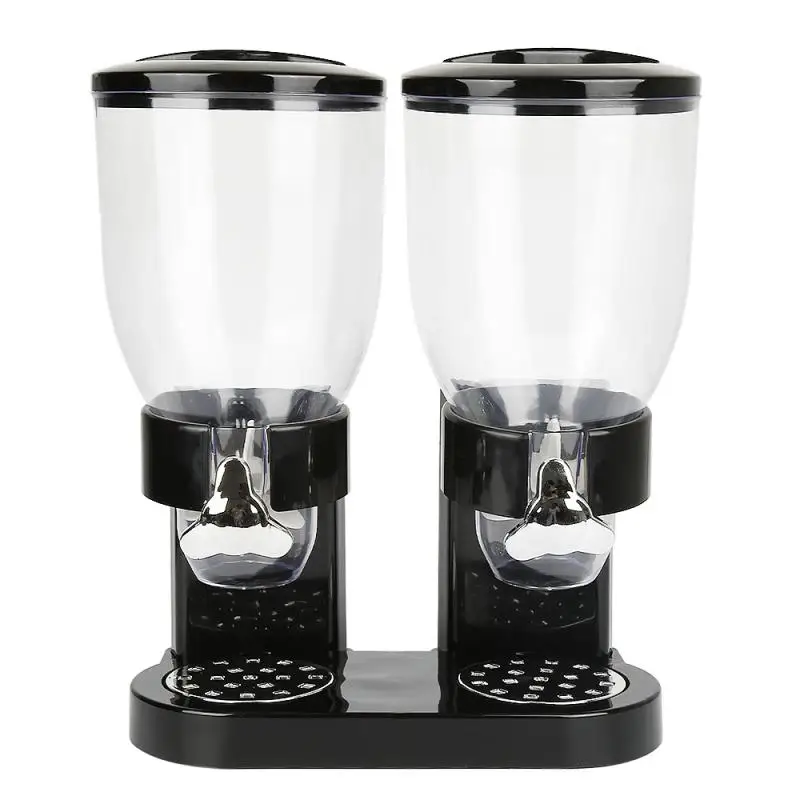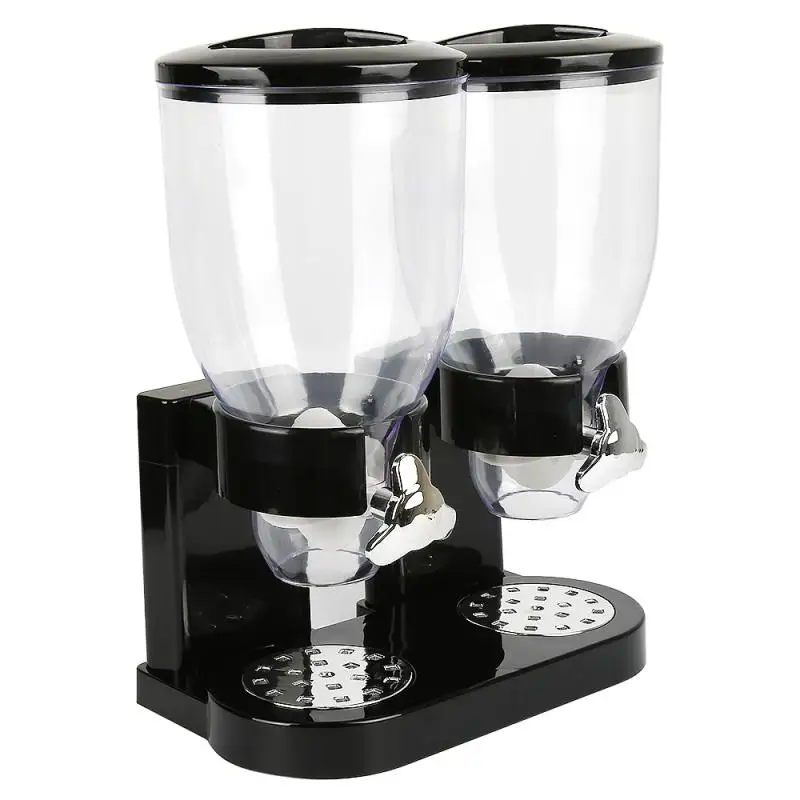 The two-chamber dispenser can maintain the freshness and flavor of cereals. It can keep cereals, dried fruits or other foods away from humidity and eat them with your breakfast; cereals are still crunchy and pleasant for breakfast. These containers are equipped with a rotating handle system, Each rotation will deliver 28 grams of content; these two dispensers with a capacity of 3.5 liters each are completely sealed, which can perfectly preserve food