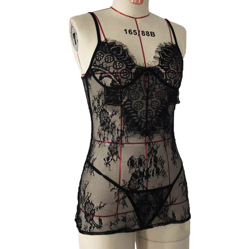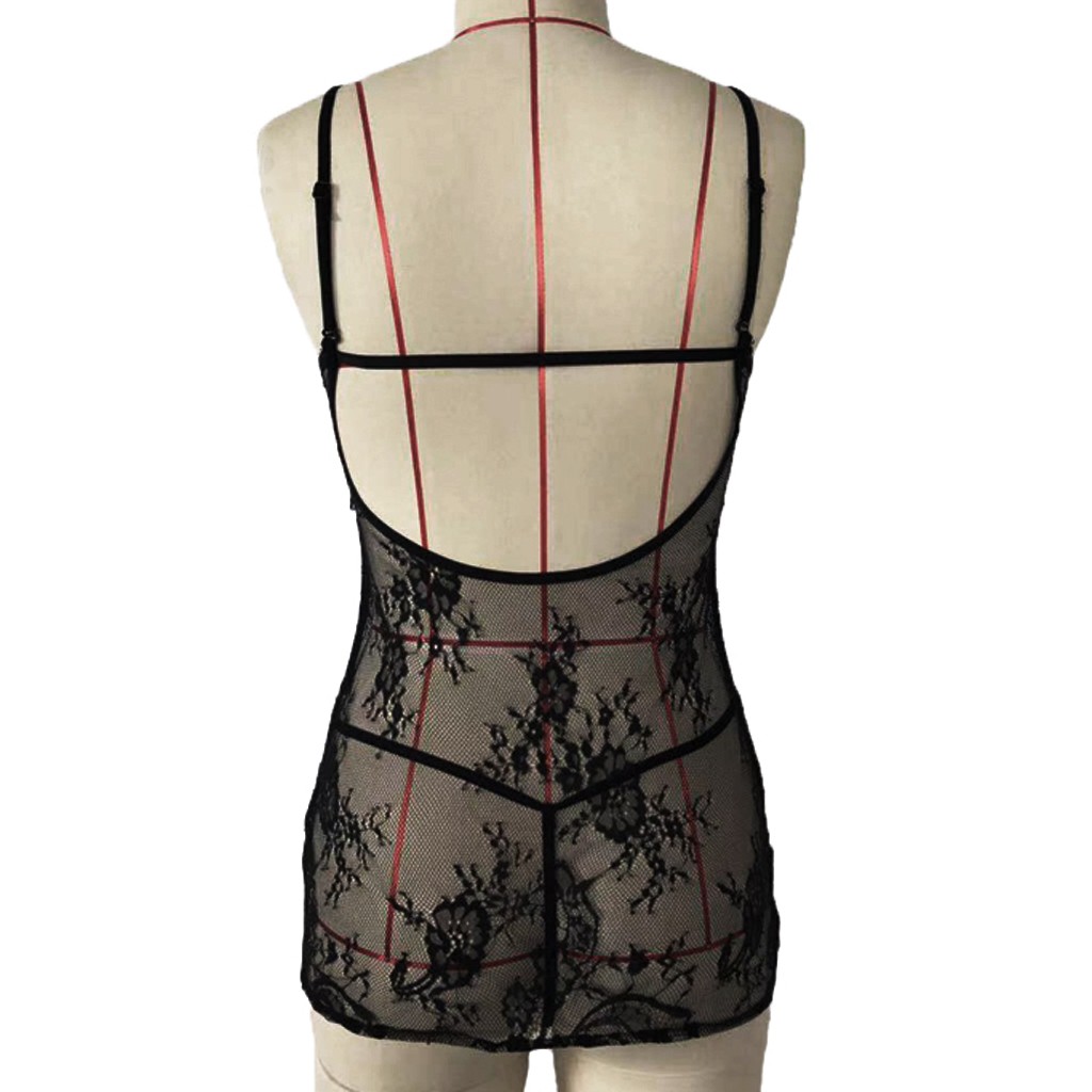 Женское сексуальное кружевное черное нижнее белье, комплект ночного белья с открытой спиной