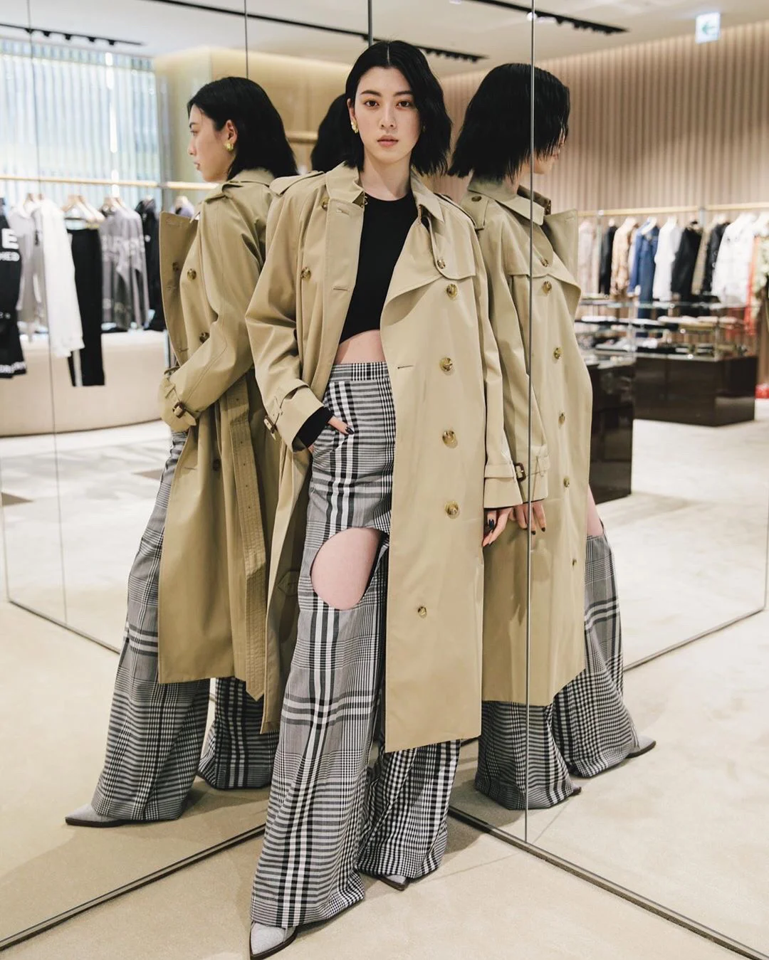 with a Vintage check lining and undercollar. The style is