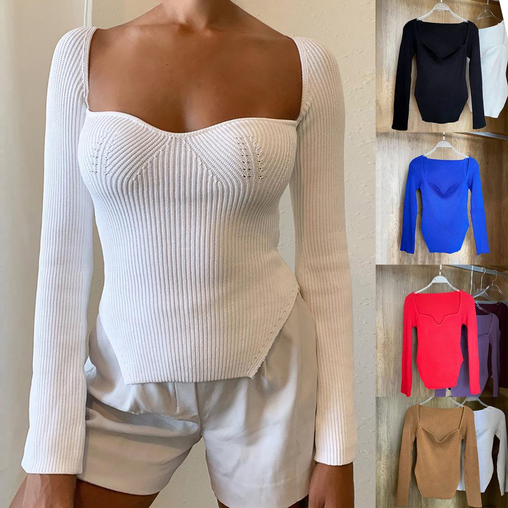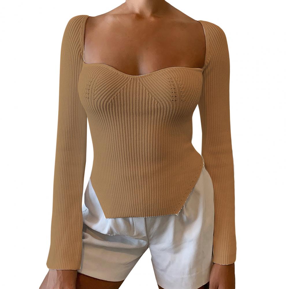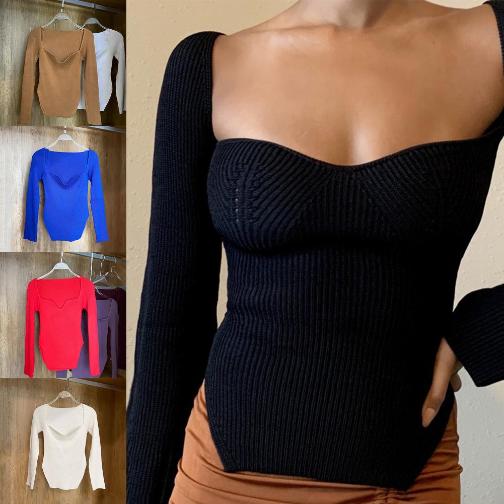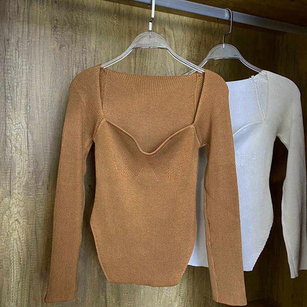 Дизайн с квадратной горловиной может лучше показать вашу сексуальную ключицу и очаровательную шею. Женская одежда будет более привлекательной в этом облегающем свитере.