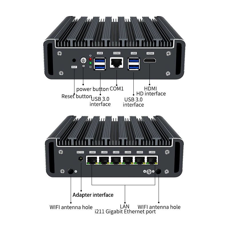 6xINTE82574L 1000mps или 6xi211 1000mps,4xUSB3.0, 1xRJ45 com