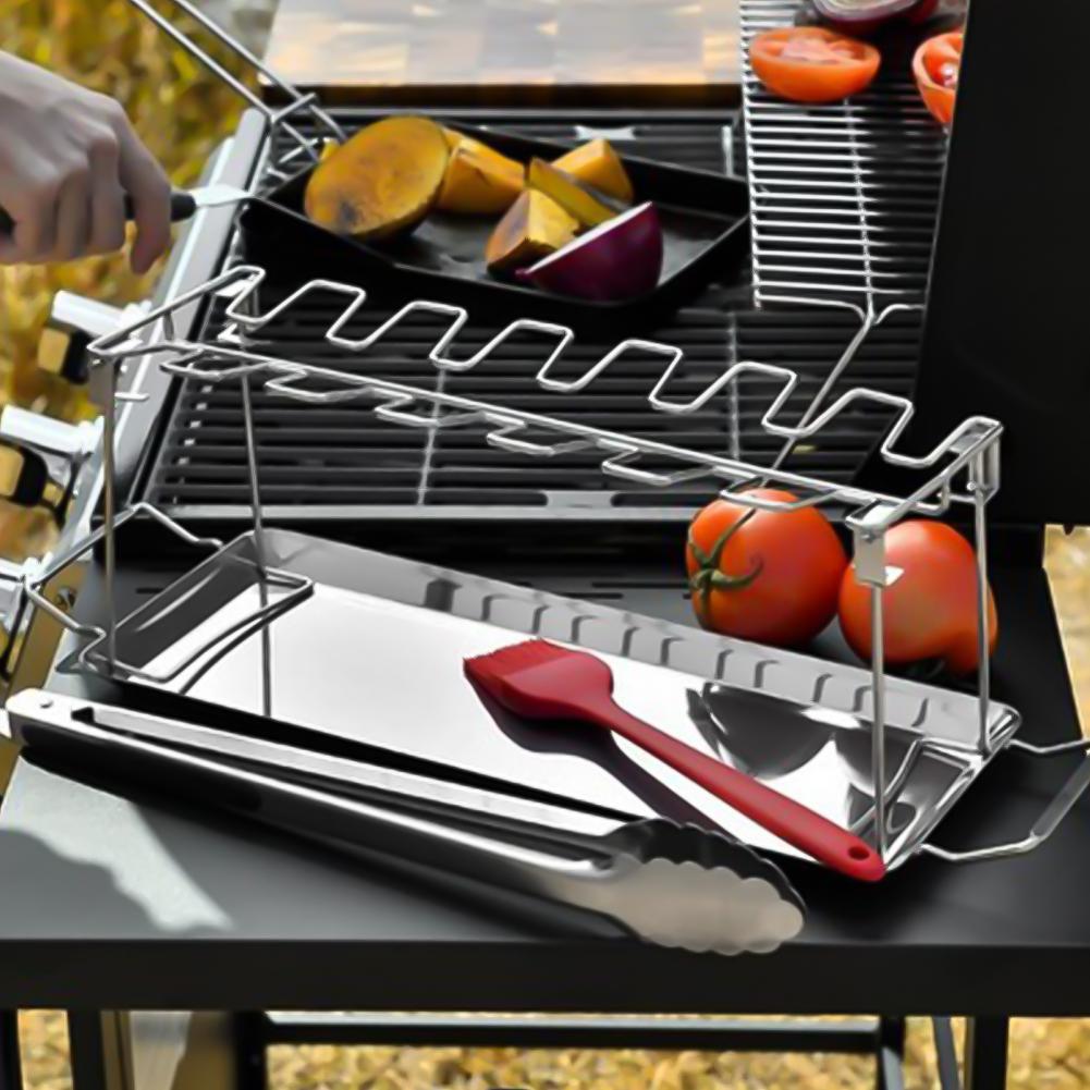 Поддон для капель эффективно предотвращает разливы масла, а также может собирать куриные соки для гриля овощей.
