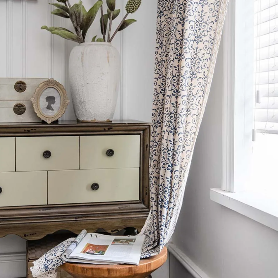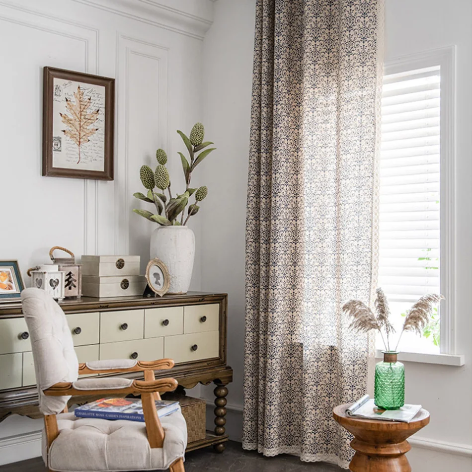 Китайский стиль простой синий и белый фарфор Печать Bay окно занавеска кабинет спальня полу-затенение ванная комната перегородка занавеска