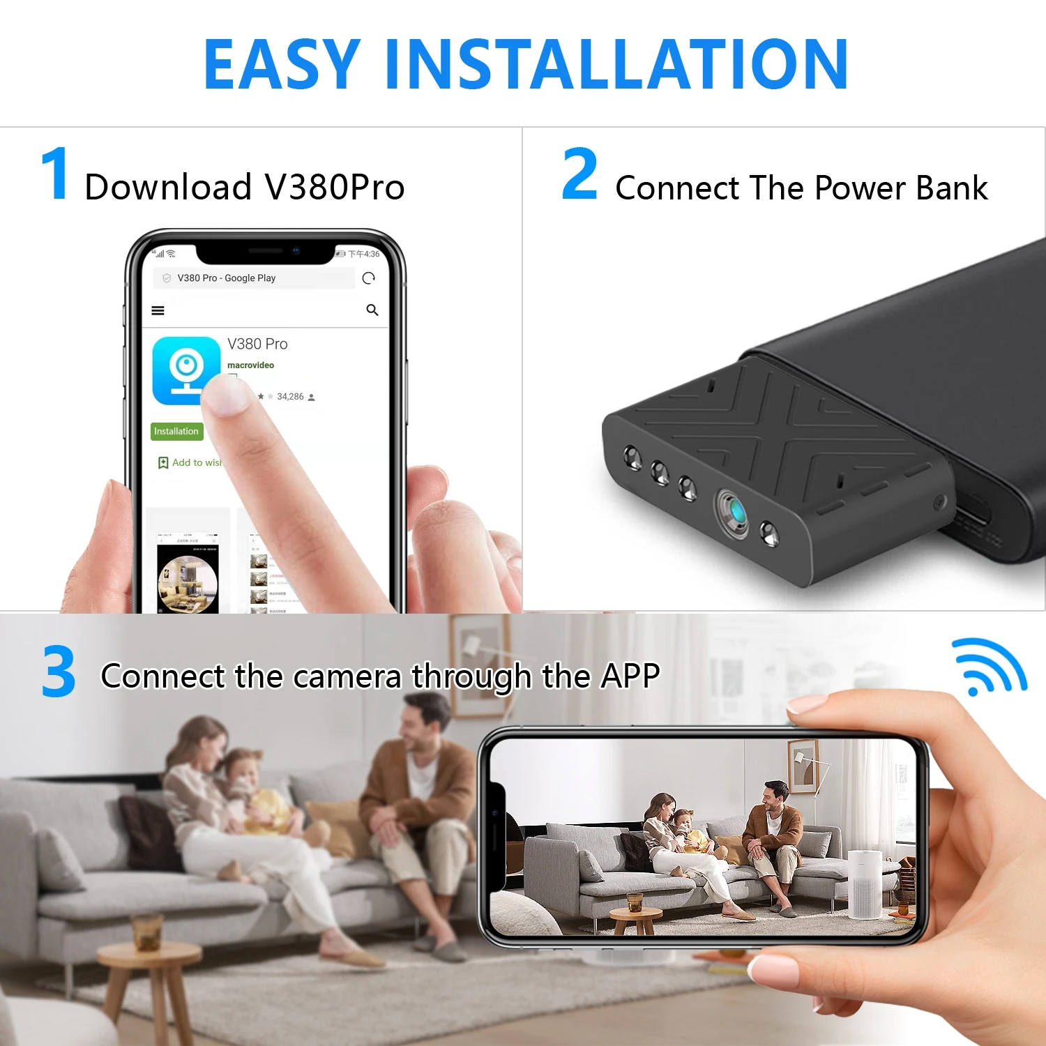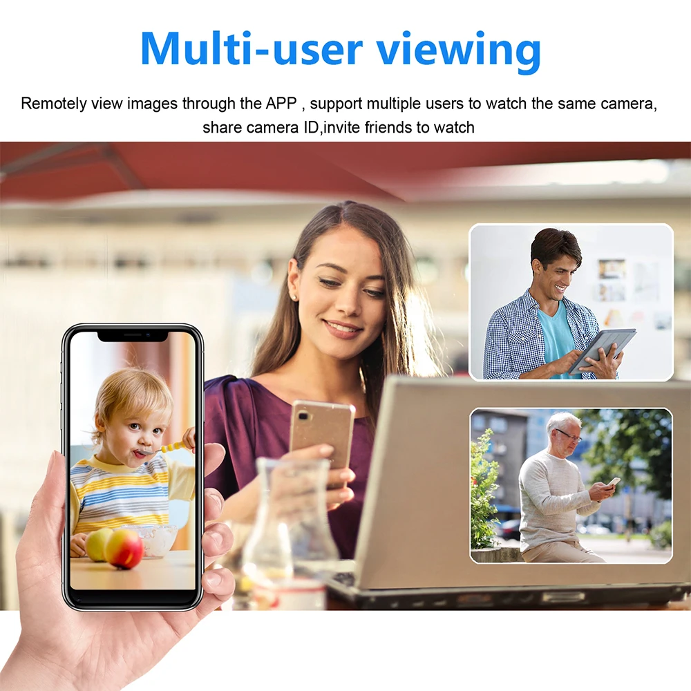 ✔✔✔【Удаленный доступ 】приложение Совместимо с Android, IOS и Windows/Mac ПК. После того, как камера была подключена к Wi-Fi (только 2,4G Hz Band Wi-Fi), вы можете смотреть изображение в реальном времени или просматривать его в любое время и в любом месте с помощью приложения. Эта камера также поддерживает прямую трансляцию и запись без подключения к Wi-Fi. Применение ПК версии также поддерживает
