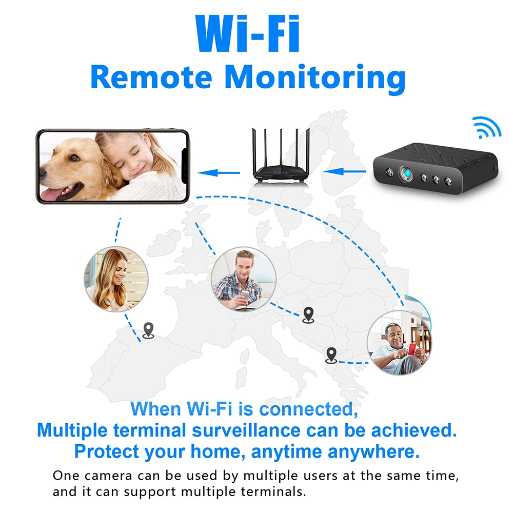 ★Режим IP★: Камера подключена к Wi-Fi 2,4G Band. Мобильный телефон/камера доступа ПК удаленно. Нет ограничений на расстояние между камерой и мобильный телефон/ПК.