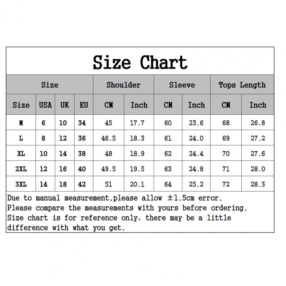 [Наш Размер XL] Длина: 70 см/27,6 ", обхват груди: 116 см/45,7", длина рукава: 62 см/24,4 ", ширина плеч: 48 см/18,9" (прибл.)