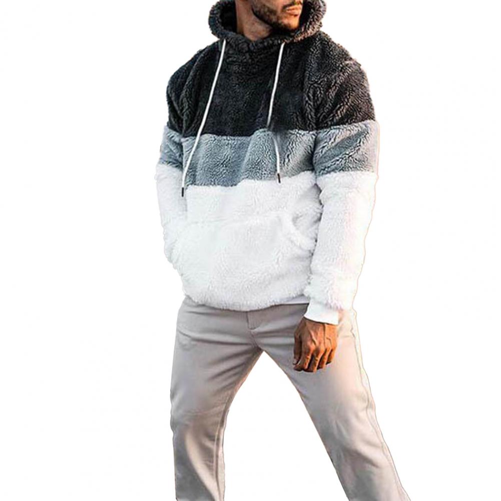 Это толстовка с капюшоном и плюшевой подкладкой, которая согреет Вас в холодные дни. Мужская толстовка с цветными блоками может подарить вам Повседневный и модный внешний вид.