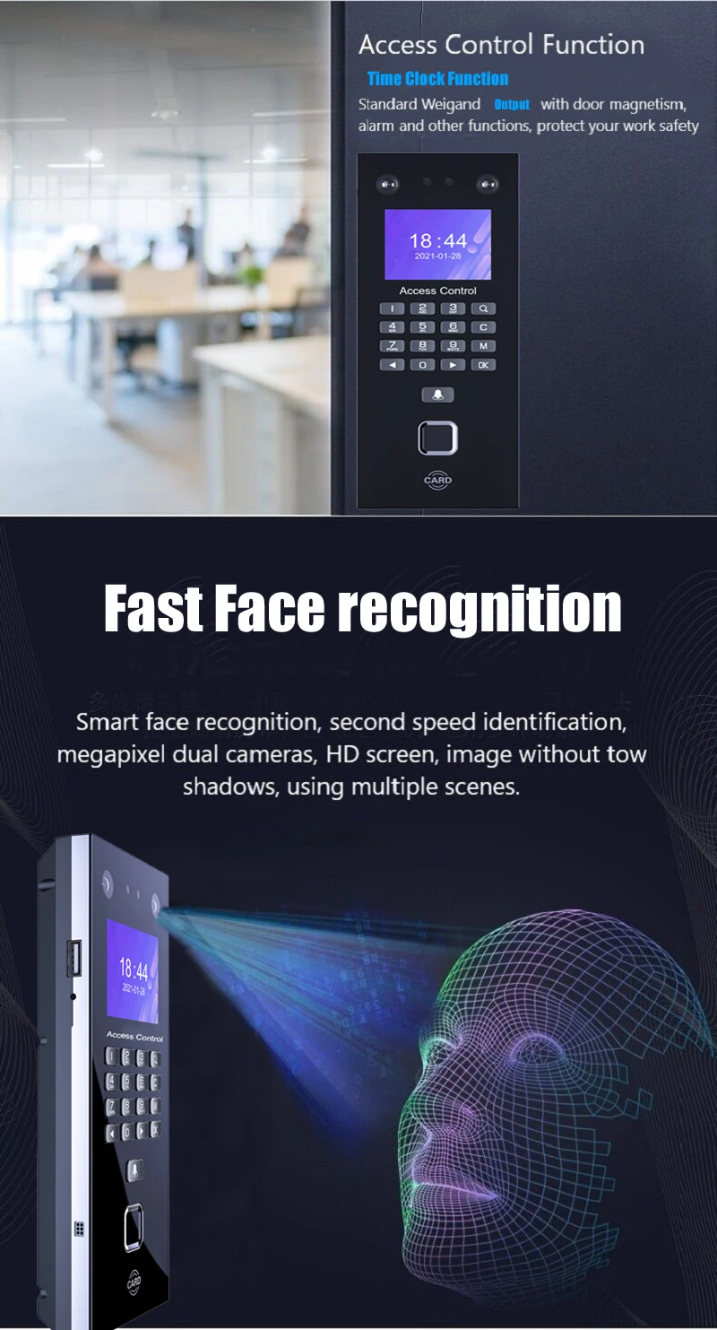 his small and versatile unit is exactly what you need for your finger /palmprint/RFID Card/ face access control.The is a TCP(optional) access control fingerprint and face time clock . ID/IC module option. IT is aTechnical Specification: