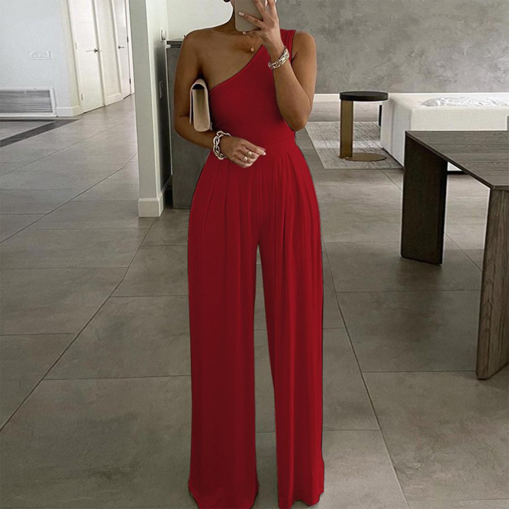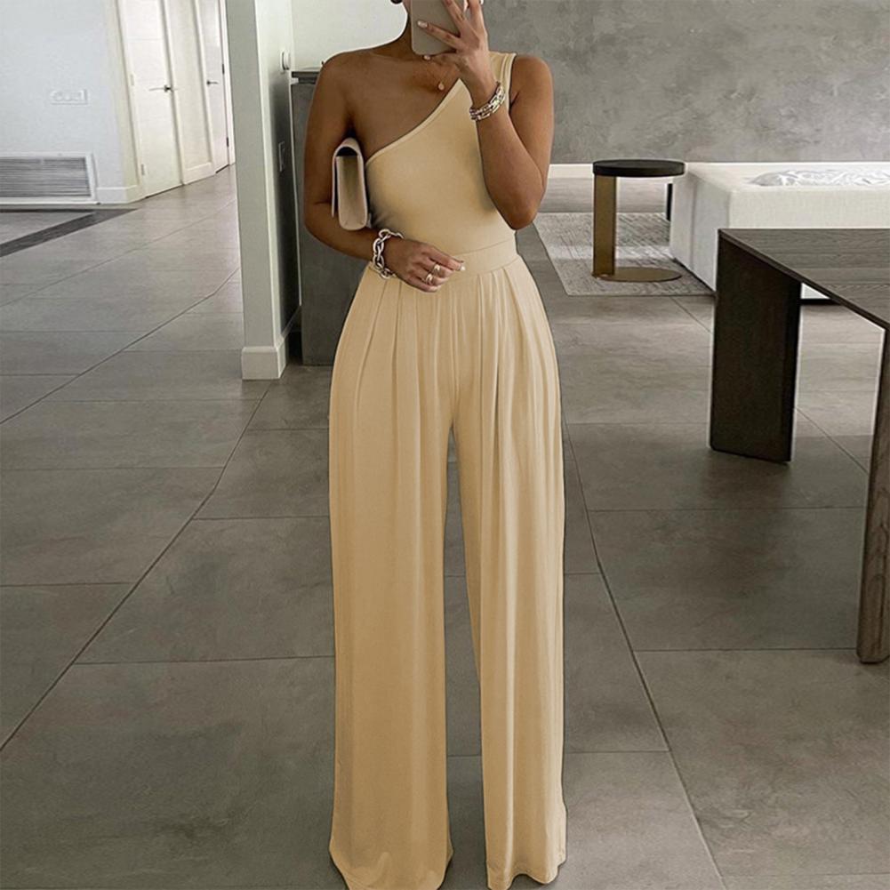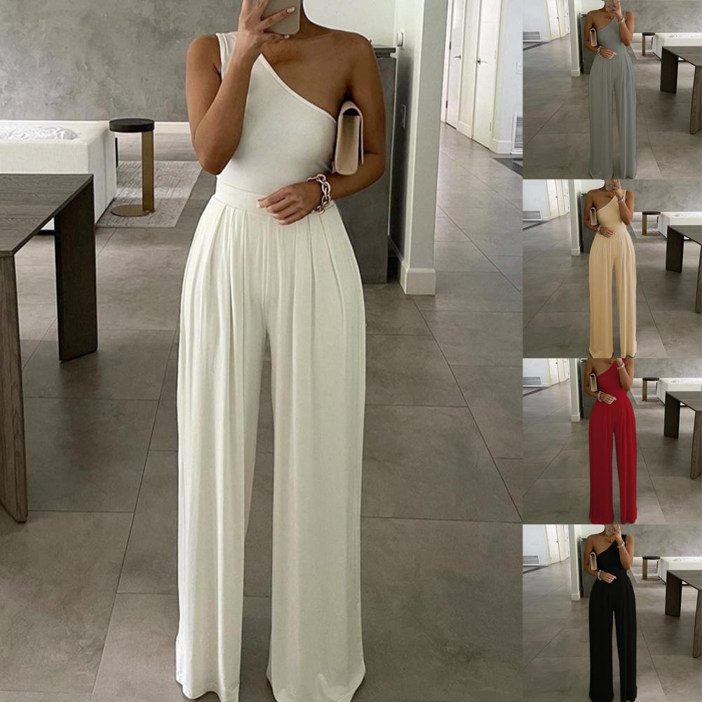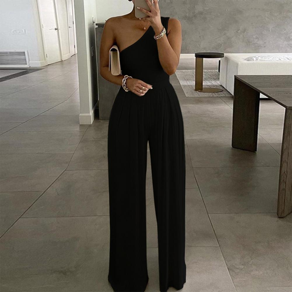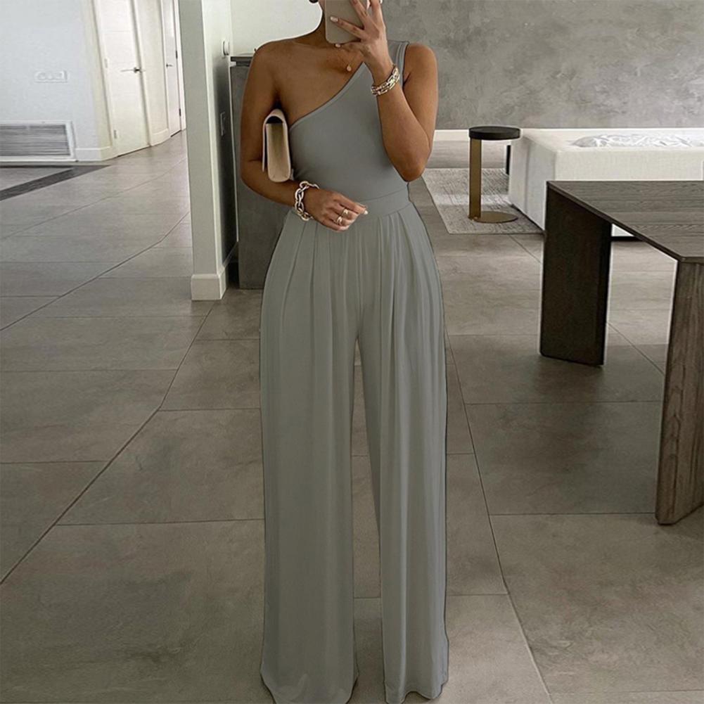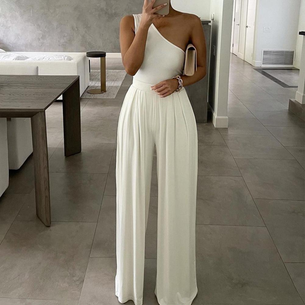 Особенности: с одним плечом, в полоску, с широкими штанинами