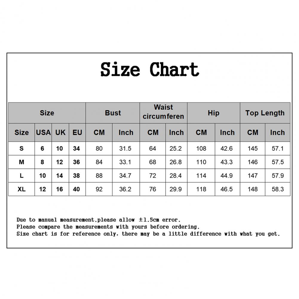 [Наш Размер XL] Обхват груди: 95 см/37,4 дюйма, обхват бедер: 121 см/47,6 дюйма, обхват талии: 81 см/31,9 дюйма, длина: 147 см/57,9 дюйма (прибл.)
