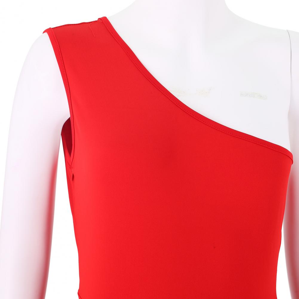 Особенности: косая плечи, сплошной цвет, высокая талия