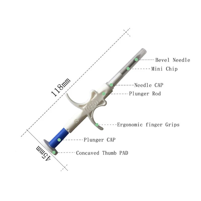 Система защиты от падения, которая гарантирует, что микрочип останется внутри иглы до тех пор, пока он не будет имплантирован. Гарантия 100%.