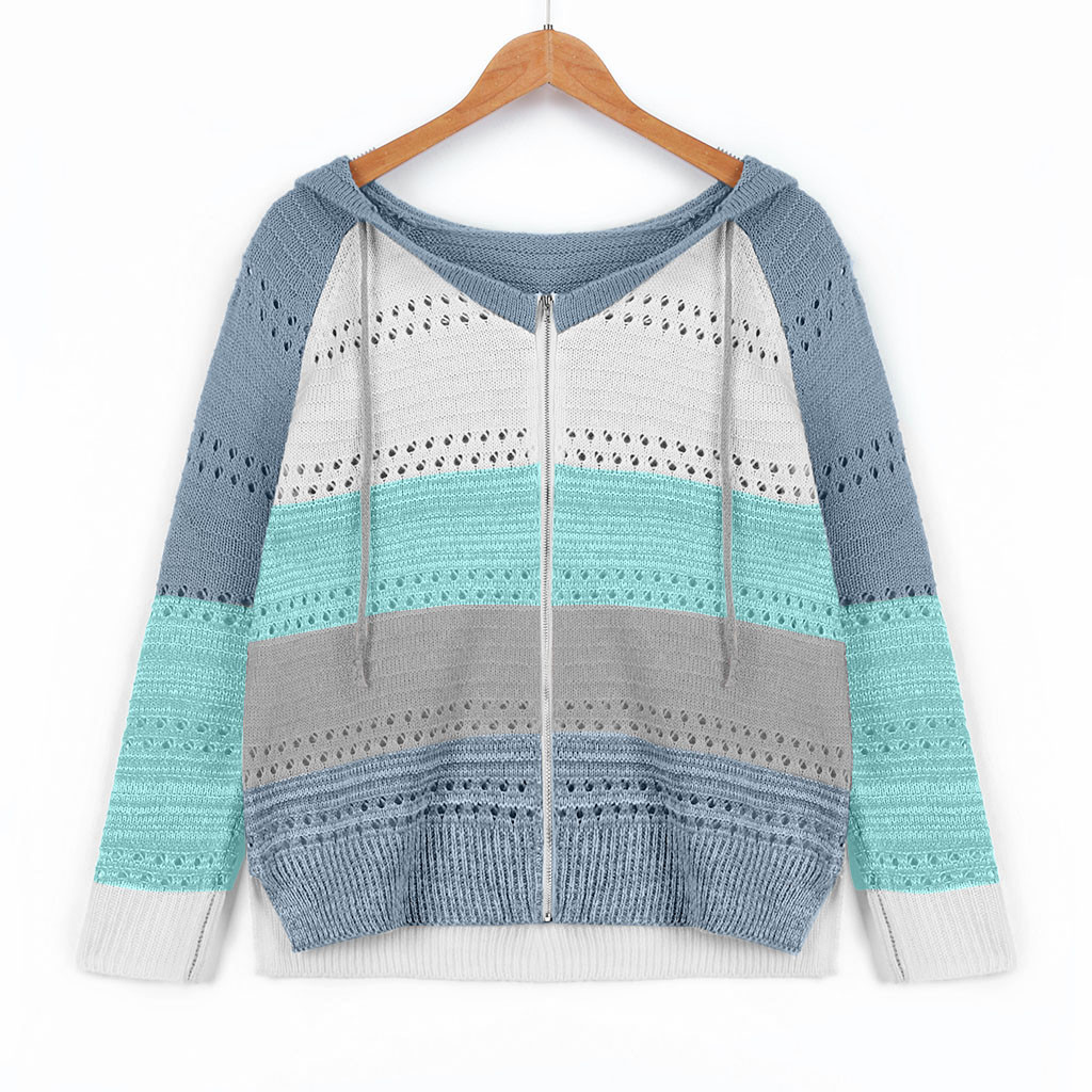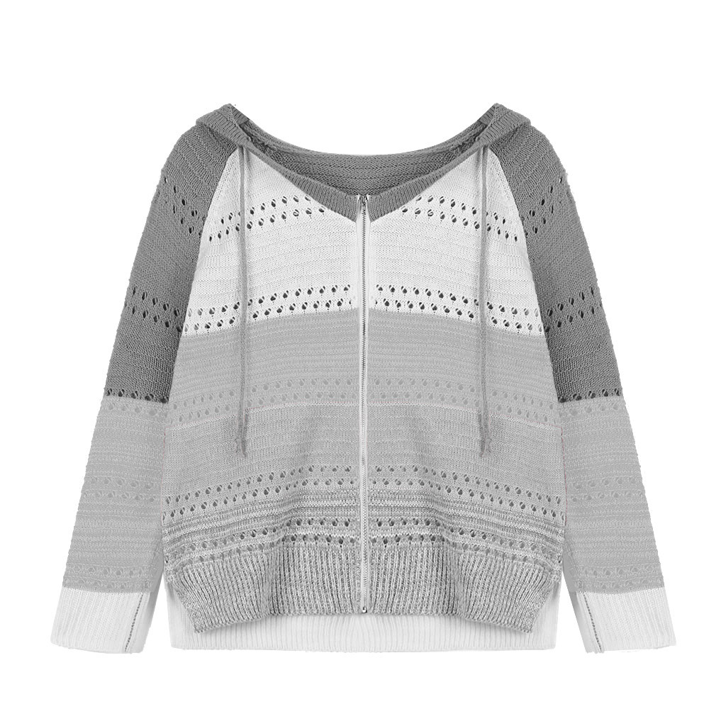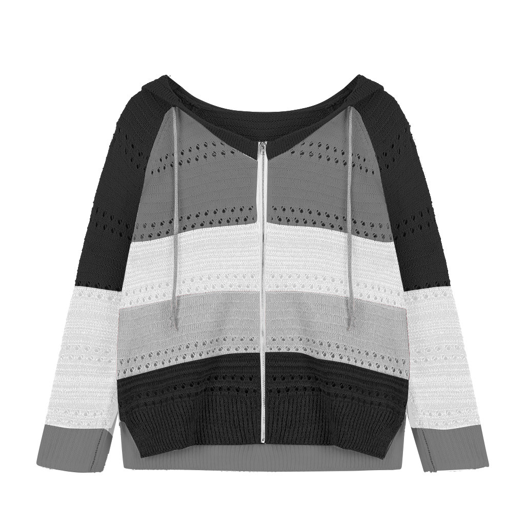 Толстовки на молнии контрастного цвета Модные женские повседневные Лоскутные с длинными рукавами свитер с капюшоном кардиган Корейская Блузка Топы Moletom