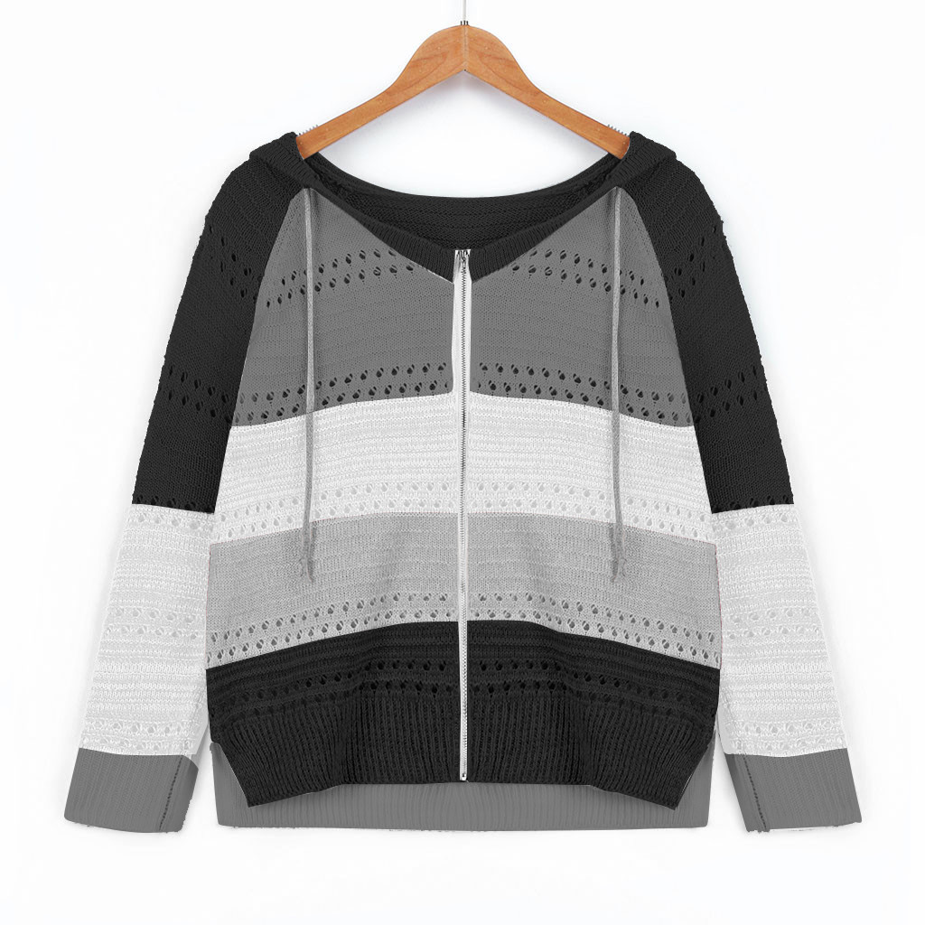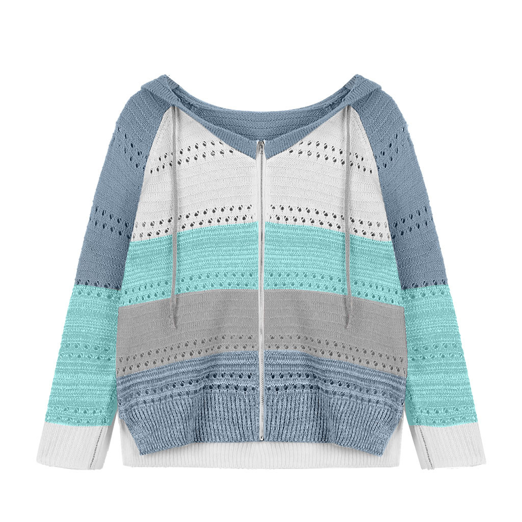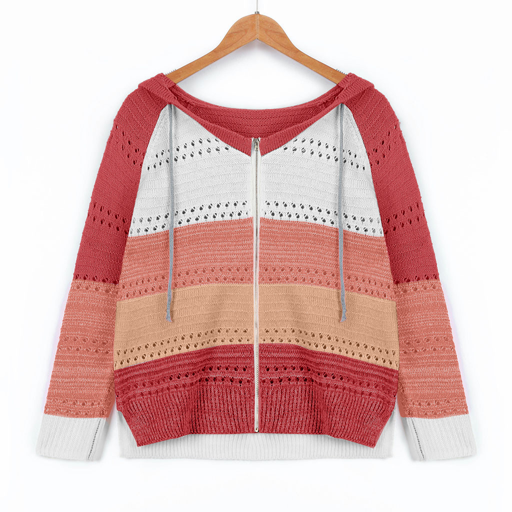 Толстовки на молнии контрастного цвета Модные женские повседневные Лоскутные с длинными рукавами свитер с капюшоном кардиган Корейская Блузка Топы Moletom