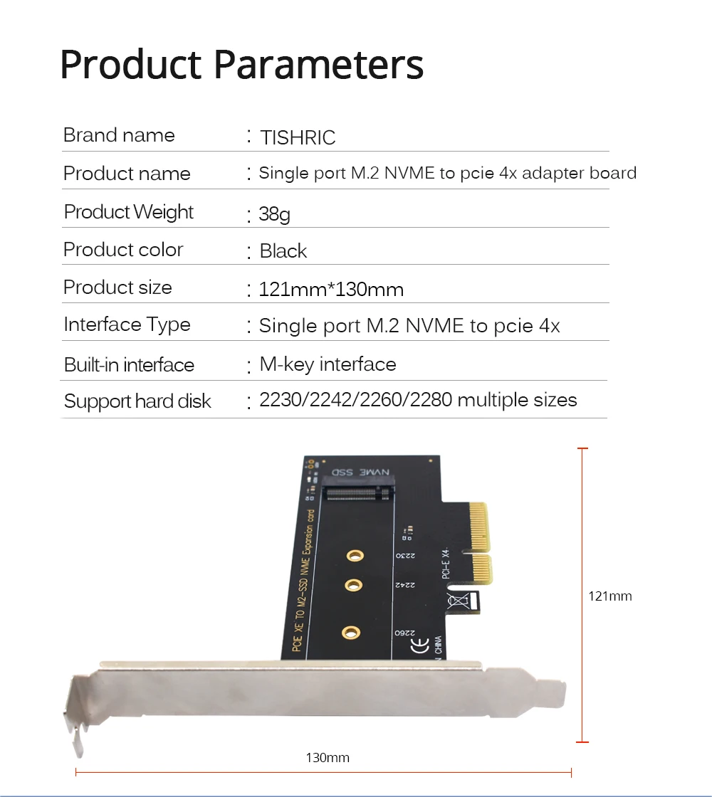 TISHRIC M2 SSD NVME PCIE карта расширения один порт M.2 NVME к PCIE 4X плата адаптера Поддержка порта жесткого диска 2230/2242/2260/2280