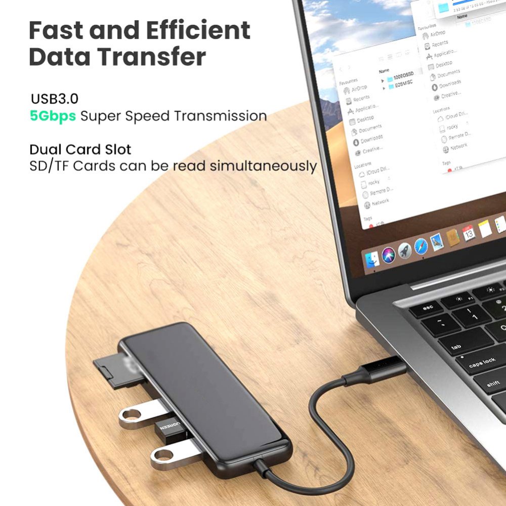 3*5 Гб/c супер скорость передачи данных: Этот концентратор USB Type C придает дополнительный с 3 портами (стандарт 3,0 портов для подключения нескольких USB для подключения периферийных устройств, таких как флеш-накопитель, жёсткий диск, клавиатура, мышь, принтер, MP3 плеер и многое другое. Многопортовый концентратор может держать вас подальше от проблем с подключением и отключением повторного подключения. Поддерживает сверхбыструю передачу данных до 5 Гбит/с, что позволяет передавать hd-фильмы или файлы всего за несколько секунд.