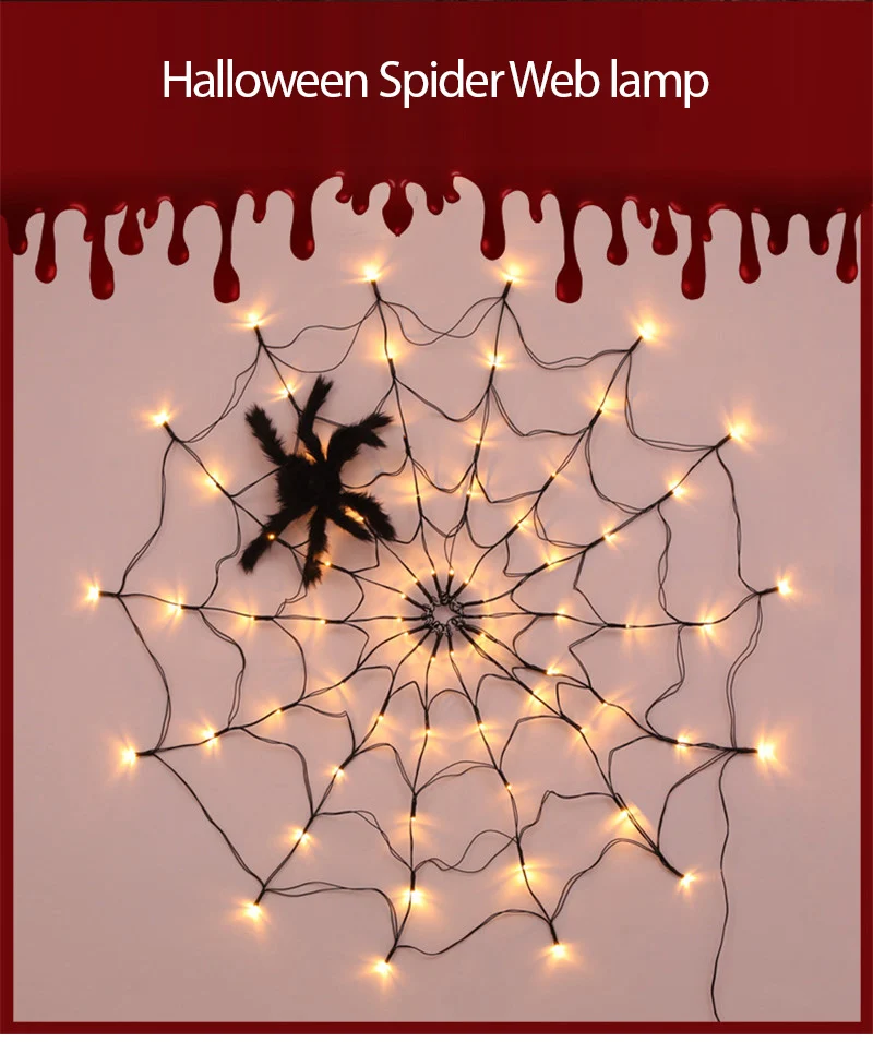 [Веб-паук на Хэллоуин] черная жуткая паутина, освещенная 70 светодиодами, и черный плюшевый паук обязательно добавят удовольствия в вашу ночь на Хэллоуин.