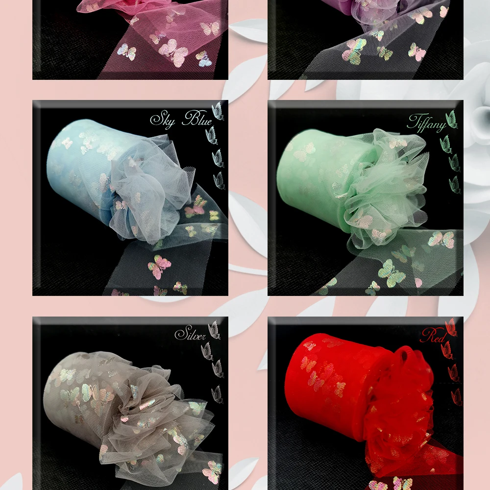 Ширина: 6 см Длина: 25 ярдов (22 метра) Узор: с радужными или жемчуг Баттерли Упаковка: без бумажной трубки, каждый в одном пакете.