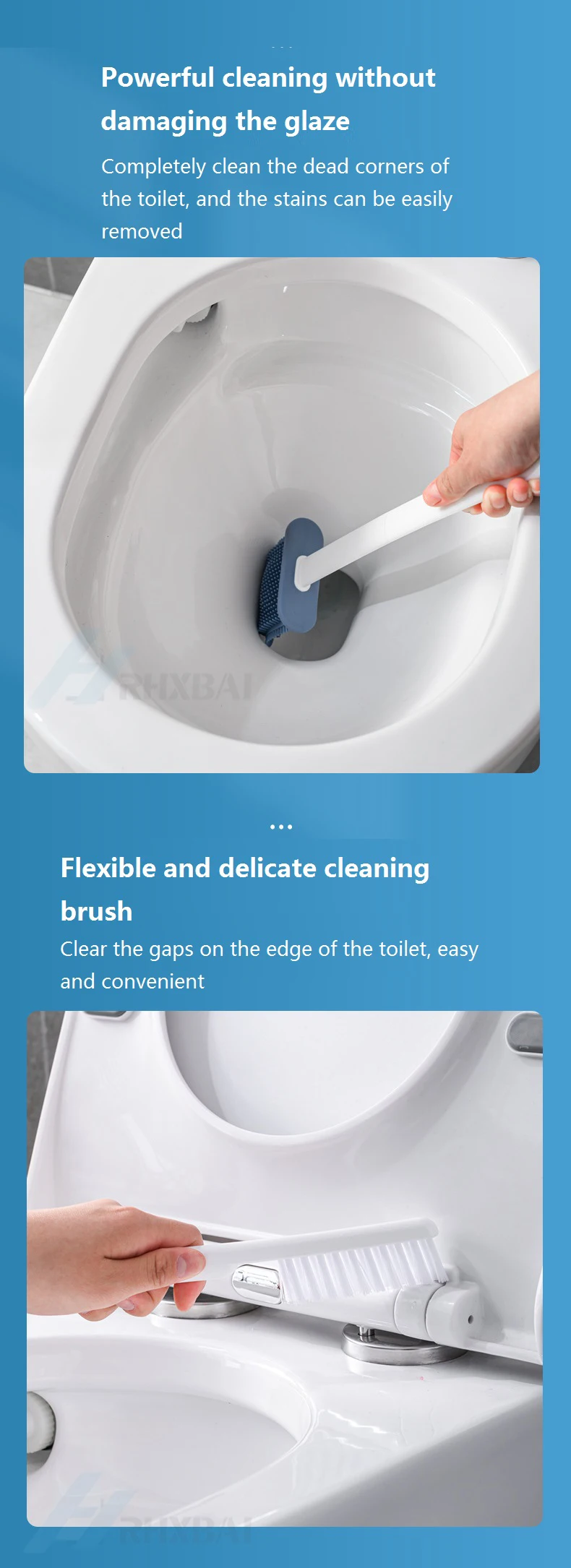 Мягкие TPR, силиконовые щетины обладают хорошей чистящей способностью, могут войти в край унитаза, Глубокая чистка, не повредит эмаль. Плоская головка кисти может быть согнута так, чтобы она полностью соответствовала углу обода и доходила до нижней части обода. Наконечник головки щетки предназначен для лучшей очистки обода унитаза, сгибая головку щетки вверх.